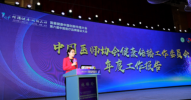 中国医师协会健康传播工作委员会常务副主任委员兼秘书长施琳玲作工作报告。