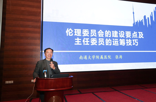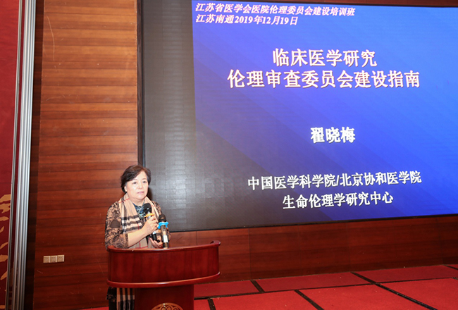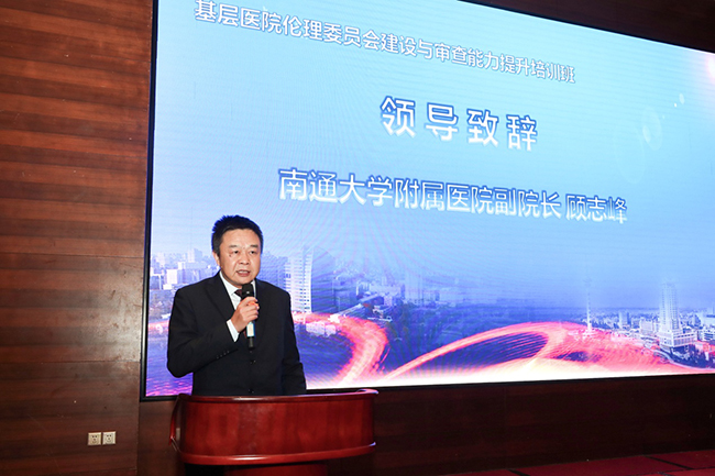 受江苏省医学会学术会议部、江苏省医学伦理学分会委托,由我院承办的“基层医院伦理委员会建设与审查能力提升”培训班近日在通举行。培训班由我院伦理委员会主任委员张涛教授主持。副院长顾志峰教授出席会议并致辞。江苏省医学伦理学分会候任主委、江苏省人民医院伦理总监汪秀琴教授,江苏省卫健委科教处主任王舒心,国家卫健委伦理办公室主任、中国医学科学院/北京协和医学院生命伦理学研究中心执行主任翟晓梅教授等均作了热情洋溢的致辞。