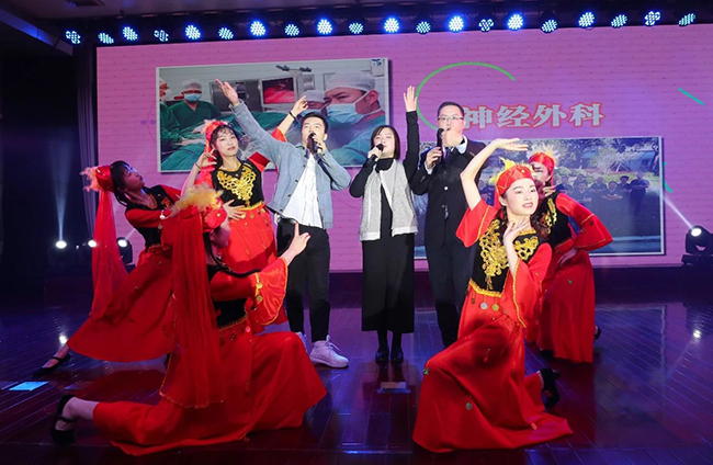 坚守初心创佳绩,辞旧迎新展未来。12月31日晚,我院影像楼四楼报告厅内洋溢着丰收的喜悦与团聚的欢乐,第五届“附院人物八十佳”颁奖典礼暨迎新年文艺晚会在这里隆重举行。南通大学校长施卫东,南通市工商联总商会副会长、南通经济开发区纯源医学慈善基金会主席施聪,南通市市民巡访团副团长、我院特邀行风监督员杜国元,全体院领导,各职能部门、业务科室负责人、护士长和来自各领域的资深专家、特邀代表、医护人员代表等共400余人欢聚一堂,辞旧迎新,共同见证一年一度属于附院人的荣誉盛会。 院党委书记高建林致辞,他代表医院党政领导集体,向在医疗、护理、教学、科研、管理和保障等各条战线上表现突出,获得表彰的附院人表示衷心的祝贺,并向在背后默默付出的全体家属表示由衷的感谢和敬意。他表示,“附院人物八十佳”颁奖典礼既是对全院各领域涌现出来的先进典型进行表彰、发挥先进典型的示范引领作用,也是进一步凝聚全院干部职工干事创业的精气神、弘扬向上向善、同频共振、和谐团结正能量的重要举措。高建林深情回顾了医院2019年在医、教、研及管理等方面取得的成绩,同时鼓励全院上下在即将到来的2020年,以坚如磐石的信心、只争朝夕的劲头、坚韧不拔的毅力,一步一个脚印,为建设一个具有区域影响力的长三角北翼和沿海经济带高水平医疗服务高地而不断奋斗。 颁奖环节,南通大学校长施卫东,南通大学党委副书记、副校长,我院党委书记高建林为“十佳口碑医生”颁奖;享受国务院特殊津贴专家、临床首席专家王志伟教授为“十佳科研之星”颁奖;临床首席专家倪松石教授为“临床新技术之星”颁奖;南通市工商联总商会副会长、南通经济开发区纯源医学慈善基金会主席施聪,院党委副书记、院长施炜为“十佳护理之星”颁发由江苏巨力钢绳有限公司支持设立的“巨力”南丁格尔奖;省五一奖章获得者、临床首席专家曹苏教授为“十佳教学之星”颁奖;南通市市民巡访团副团长、我院特邀行风监督员杜国元为“十佳医德之星”颁奖;医院原党委书记李道生为“十佳管理之星”颁奖;全国先进工作者、急诊科主任黄中伟教授为“十佳保障服务之星”颁奖。十佳临床新技术之星代表赵辉、十佳护理之星代表姜丽娟、十佳教学之星代表张宇分别就临床新技术、护理工作、教学工作畅谈了自己的感想。 颁奖期间,附院人自编自导自演的节目精彩纷呈,整场演出高潮迭起,赢得现场观众掌声不断。由护理部与外科分工会选送的歌舞《最好的舞台》作为开场舞闪亮登场,点燃全场热情;院工会选送的表演唱《逛附院》唱出了我院新门诊大楼启用后的新气象;护理部选送的歌舞《不一样的男丁格尔》展示了男护士群体作为护理团队“不一样的烟火”的阳刚帅气;由院工会选送的三句半《迎新年 赞附院》把身为附院人的自豪感展现得淋漓尽致;保障分工会选送的吉他弹唱《爱的奉献》展示了附院人多才多艺的精神风貌和乐于奉献的内心独白;党委宣传部选送的小品《如果身体会说话》从新颖的角度为大家演绎了一场精彩绝伦的科普创意秀;院工会选送的歌曲串烧《把我的专科唱给你听》将专科特色化为悠扬旋律,流进了在座观众的心里;团委选送的相声《找个女朋友》诙谐幽默,一个接一个地抖包袱,引得全场笑声连连;临床综合分工会选送的古典舞《纸扇书生》完美演绎了刚柔并济的古风意蕴;院工会与离退办选送的音诗画《我有一个家》,院党委书记高建林、院原党委书记张涛等亲自上台演绎,将全场气氛推向高潮,让在场的每位附院人无比振奋、倍感自豪,更坚定了大家砥砺奋进、跻身全国医院排行百强榜的责任感和使命感。颁奖典礼由葛媛璟、郑文杰、陈韬、陈静主持。 在这个辞旧迎新的夜晚,附院人以激情为笔,以舞台为书,抒发心中梦想,描绘未来宏图。长风破浪会有时,直挂云帆济沧海。通大附院人将不忘初心、牢记使命,砥砺前行奏响时代最强音,跑出附院加速度,为建院110周年献礼。 文|王令伊 图|陈善良 朱静仪 崔 勇