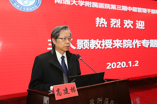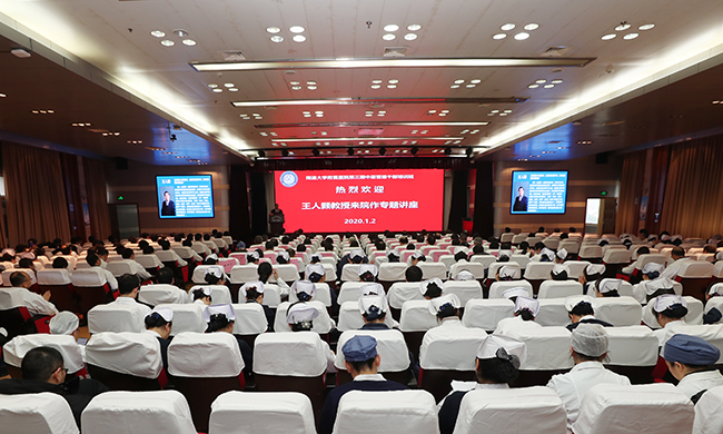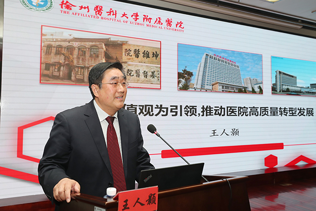 为汲取现代医院先进管理经验,推动医院事业高质量发展,1月2日下午,我院举办第三期中层管理干部培训班第11场专题报告会,邀请徐州医科大学附属医院党委书记王人颢来院作题为《以价值观为引领,推动医院高质量转型发展》的专题报告。院党委书记高建林主持报告会。在院院领导、中层以上管理干部、助理岗位人员约300余人聆听了报告。 王人颢围绕新时代卫生与健康工作的新思想、新要求,介绍了徐州医科大学附属医院高质量转型发展实践,重点阐述了“1234”发展战略的内涵与实质:即建设具有国际视野的现代化区域医学中心,实施人才学科和文化铸院两大战略,狠抓医疗技术、服务质量、医院管理三项工程,实现回归初心、回归本职、回归传统、回归梦想四个回归。王人颢倡导大家通过“医德品行正起来、医疗技术强起来、医疗服务暖起来、优良传统扬起来、规矩意识挺起来、身体素质好起来”,做“有知识、有能力、有温度、有情怀、有尊严、有价值”的“六有”新时代医务工作者。 院党委书记高建林对报告会进行了总结。他指出,徐州医科大学附属医院实施的“1234”发展战略,助推医院从规模发展向内涵发展转变,与新时代健康中国要求、医改要求、老百姓看病需求等高度契合,为我院提升精细化管理水平,实现医院事业高质量、可持续发展提供了宝贵经验。叶伊湉