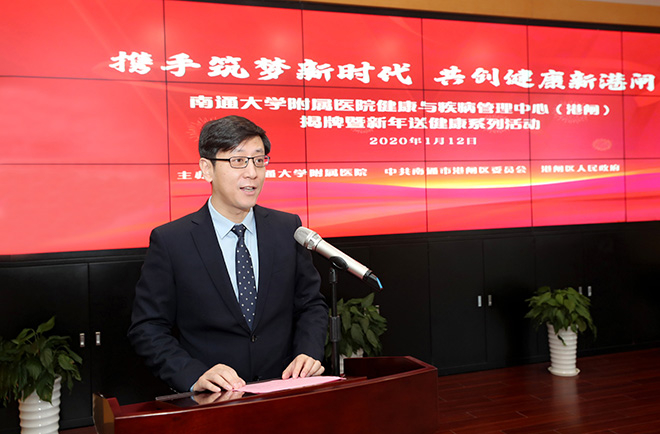 1月12日,我院在港闸区公共卫生服务中心举办“携手筑梦新时代 共创健康新港闸”通大附院健康与疾病管理中心(港闸)揭牌暨新年送健康系列活动。中共港闸区委书记黄卫锋,港闸区委副书记、区长、区政协主席曹金海,港闸区委常委、政法委书记张洪晖等领导和嘉宾莅临活动。南通大学党委副书记、副校长、我院党委书记高建林,院党委副书记、院长施炜,副院长鲁菊英出席活动。揭牌仪式由鲁菊英主持。 院党委书记高建林和港闸区委书记黄卫锋共同为“南通大学附属医院健康与疾病管理中心(港闸)”揭牌。 院党委副书记、院长施炜致开幕词,他说通大附院作为集医、教、研为一体的地区龙头医院,在新时代健康中国建设的浪潮中,将继续不忘使命,勇立潮头。健康与疾病管理中心(港闸)的揭牌,标志着医院健康与疾病管理工作迈上了新征程,开辟了服务百姓、回馈社会的新天地。他表示将始终秉承“大医精诚 以宏慈善”的医院文化精神,更加精准对接和满足港闸区群众多层次、多样化、个性化的健康需求,努力打造一流的健康与疾病管理学科,将“健康中国行动”付诸行动,为江海大地的广大民众管好健康,为健康中国、健康江苏、健康南通谱写新的灿烂篇章。 港闸区委副书记、区长曹金海在讲话中说,通大附院是全国首批三级甲等综合性医院,更是南通人民心中的健康“守护神”。健康与疾病管理中心(港闸)作为集健康体检、健康管理、健康咨询为一体的现代化健康管理中心,这是“大健康”理念在港闸落地生根的鲜活样本,也是通大附院服务基层、服务百姓的生动实践。他表示希望双方以揭牌活动为契机,在更大范围加强合作,更深领域共建共享,让港闸群众在“家门口”能享受最优质医疗服务。港闸区委、区政府也将一如既往支持中心发展,共同开创健康港闸新局面。 在新年送健康义诊活动现场,来自骨科、甲乳外科、心血管内科、风湿免疫科、内分泌科、呼吸内科、神经内科、全科医学、老年医学科、妇产科等科室的专家代表为群众义诊,并根据义诊情况免费予血糖、糖化血红蛋白、尿酸、B超、心脏超声、颈部血管超声、经颅彩色多普勒、动脉硬化测试、肺功能、骨密度等检查,发放健康资料,解读疾病预防问题等,当日共为300余人提供义诊服务。 港闸区委区政府的相关部门和街道负责同志,以及医院相关部门的相关负责人和专家参加活动。 张红燕