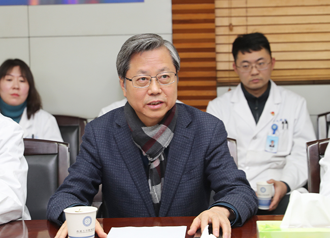 1月21日上午,我院举行慰问援疆专家座谈会,欢迎凯旋的第九批第二期援疆专家马利民、卢小健、张云峰、王伟,欢送将于春节后出征的第十批援疆专家黄剑飞、于嘉伟、陈翔、张曙、李剑。院党委书记高建林出席座谈会并讲话。座谈会由院党委副书记、院长施炜主持。 高建林首先代表院领导班子向援疆专家及家属送上亲切温暖的新春祝福。他表示,援疆专家勇挑重担,不畏艰险,以高度负责的态度全身心投入对口支援工作,履行医院公益使命,给边疆人民带去健康的同时,很好地塑造了通大附院的形象,这种担当精神值得全院上下学习。他希望援疆专家尽快进入角色,医院刚刚部署了2020年度党政工作,凯旋的援疆专家要在暂作休整后,对照工作要点,积极承担重任,在医教研等领域大展身手;即将出征的专家要发扬前九批援疆优良传统,统筹协调好援疆工作与后方工作,做到两不耽误。他叮嘱即将出征的援疆专家要树立政治安全、人身安全、医疗安全意识,独当一面时要积极与受援医院合作沟通,医院将一如既往为他们做好支持保障工作。 座谈会上,凯旋的援疆专家分别汇报了为期一年半援疆工作、生活情况和在医疗、教学、科研、管理等方面取得的成绩,感谢援疆期间医院对他们及家人的关心照顾。即将出征的第十批援疆专家分别作了表态发言,表示将坚定理想信念,始终牢记援疆工作的使命,做好本职工作,团结援助医院的同仁,将医院先进的技术和管理经验、理念带给受援医院。 院领导彭宇飞、邢晓源、马强、史加海、顾志峰和相关职能部门负责人、援疆专家所在科室、总支支部负责人参加了座谈会。傅轩