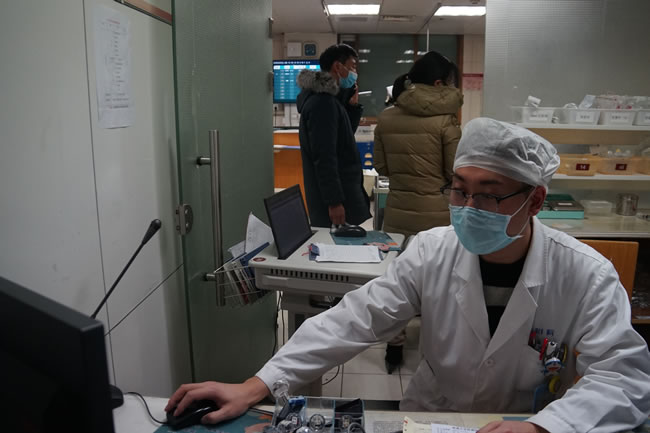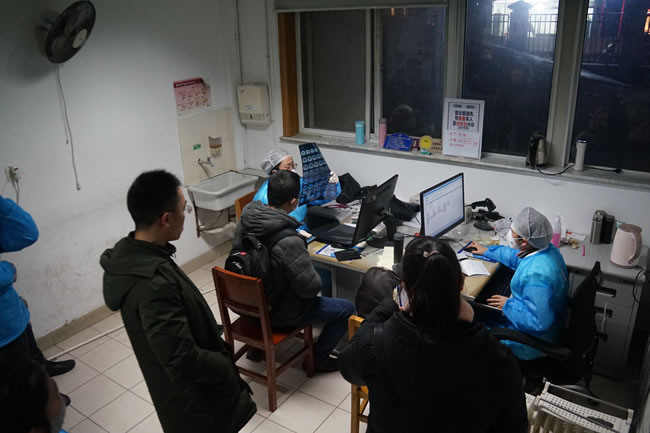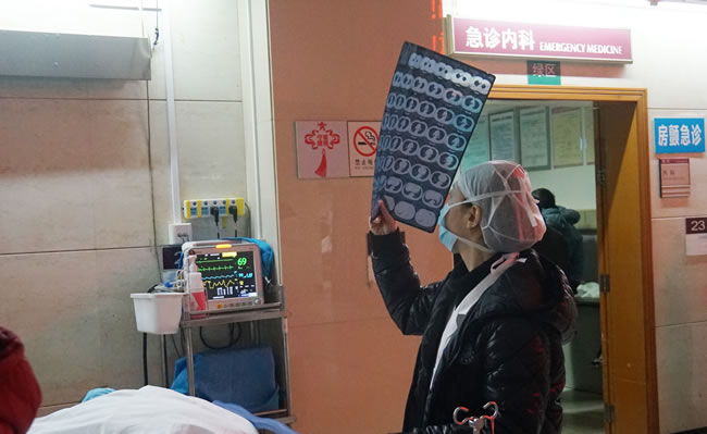 呼吸内科副主任医师王晓燕正在查看患者的胸片,她当日值24小时班,上班时间从除夕早上7:45至大年初一早上7:45,此时在她班上已经收了7位患者到呼吸内科住院。