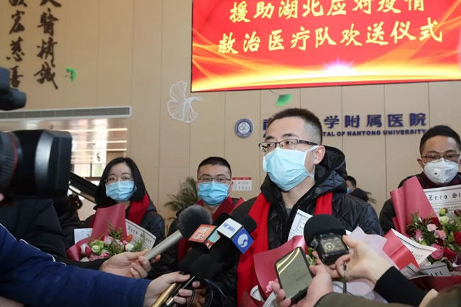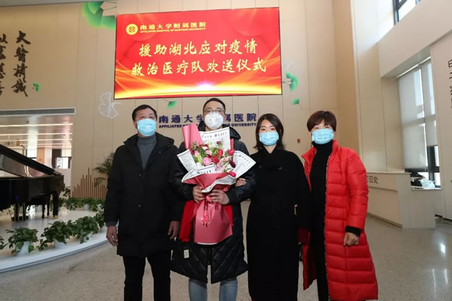 据悉,此次出征武汉的医疗队队长顾俊博士是大内科主任助理,是我院首届十佳口碑医生,擅长呼吸危重症诊疗技术、呼吸内镜介入诊疗技术等。2月1日顾俊本来是值24小时班,名单确定后,科内派同志晚上来换班,但顾俊是个特别负责的人,他做好各种交接班后,还要忙自己手头的事情,后来太累就在科室睡着了,到家时已是凌晨三点。顾俊担心家人难过,特意没让家里人来送行。出征前,顾俊向党组织郑重递交了入党申请书。