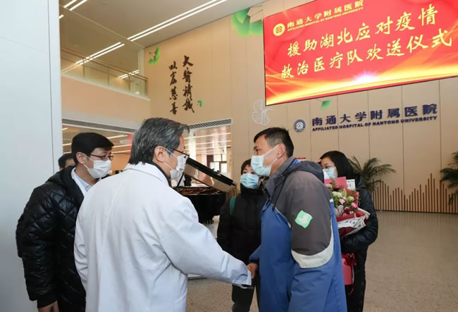 2月1日下午四点,我院接到江苏省卫生健康委紧急通知组建危重症救治医疗队出征湖北,呼吸内科和重症医学科全员报名,党员干部率先垂范,经党委会考察选拔,最后确定了第一批政治素质高、业务能力强的7位医疗队员,从接到命令到组建完毕仅一个多小时。