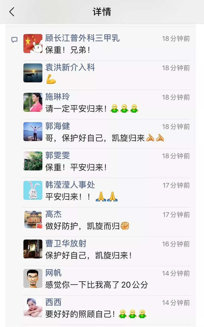 二是保重,我院作为大型综合性医院,无论是援疆援藏援外还是阻击非典、抗震救灾等重大疫情和重大灾难中,通大附院人都以强烈的使命感不畏艰险,勇挑重担,取得了一次次胜利,积累了丰富的经验,此次抗疫,队员们冒着生命危险挺身而出,再上战场,一定要做好自我防护,保证安全。