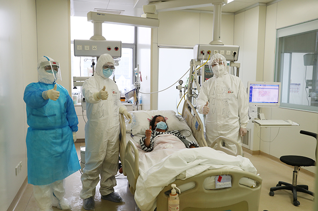 重症医学科组建了医护救治团队,由赵宏胜主任带领王林华副主任医师及许惠芬护士长等精兵强将,立即投入到抢救工作中去。“在抗击疫情的关键时刻,我们要不惜一切代价,集全院的力量救治患者,战胜病毒!”施炜院长表示。