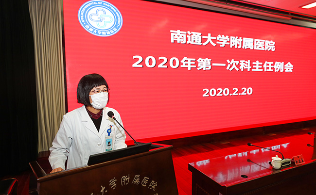 2月20日下午,我院2020年第一次科主任例会在影像楼四楼报告厅举行。院党委书记高建林,党委副书记、院长施炜,副院长史加海、顾志峰、赵建美出席会议。全体临床医技科室科主任、科副主任、主任助理,党总支和党支部书记,科护士长,以及相关职能部门负责人参加会议。会议由赵建美主持。 会上,赵建美通报了2019年医院、科室的医疗质量、运行效率、医疗安全等指标,并部署了2020年医疗方面重点工作。 施炜传达了国家、省新冠肺炎疫情防控工作视频电话会议精神以及南通大学疫情防控期间的工作要求,对医院现阶段工作进行部署。他要求坚持两手一起抓,两手都要硬,把疫情带来的影响降到最低。施炜还针对2020年工作提出三点要求:一是通过疫情防控,践行初心和使命;二是认真总结,科室主任必须了解本科室的运行情况、运行指标;三是精准施策,保证2020年各项指标任务顺利完成。 高建林在讲话中首先代表院党委、领导班子集体,对奋战在院内防控一线以及两批正在援鄂的医护队员表示衷心的感谢和崇高的敬意。高建林指出,在疫情警报未解除之前,全院上下绝不能放松警惕、掉以轻心,必须按照院部的规定和部署严格执行。针对下一阶段的疫情防控救治和正常医疗服务工作,他提出五点要求:一要严防死守,打赢疫情防控阻击战、总体战。要贯彻“外防输入、内防扩散、严格管控”策略,继续做好疫情防控和救治。二要强化落实,融入医院发展新机制、新要求。要深入贯彻落实《南通大学附属医院2020年党政工作要点》和《南通大学附属医院深化机制改革实施纲要(2020-2021)》,不断提升运行效能,确保改革见成效、医院大发展。三要修炼内涵,开拓医院发展新局面、新态势。要以“驾长车,踏破贺兰山缺”的决心,谋求学科新发展、新高度。四要结果导向,强化落实发展目标和指标引领作用。科主任必须带领团队披荆斩棘、共克时艰,完成2020年既定的工作任务。五要率先垂范,做好科室发展的主心骨、领头雁。科主任要秉持公心、守正笃行、敢于担当、善于管理、乐于奉献,做到在其位谋其政尽其职担其责。 高建林最后强调,科主任队伍是医院发展的主力军、核心力量,要切实肩负起管理和发展的主体责任,时刻拧紧“发条”,层层传导压力,步步落实责任,凝心聚力、继往开来,以优异的成绩向110周年院庆献礼。徐朗