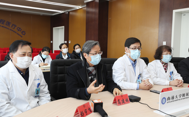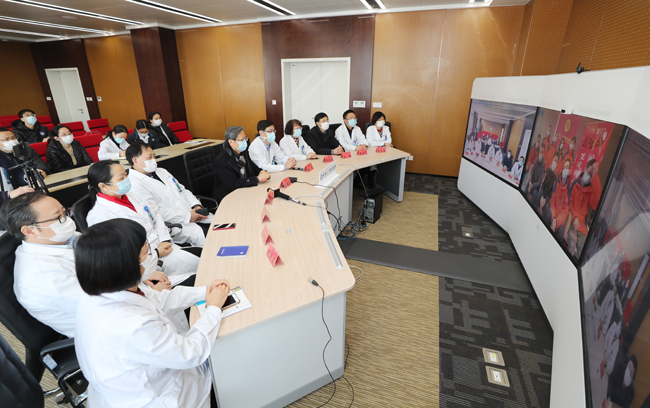 顾俊代表全体队员作表态发言,他请院领导放心,江苏省政府、省里的领导对大家照顾得非常周到,考虑得非常仔细,队员们在武汉一切都很好,大家一定会认真负责、努力工作,展示通大附院人的风采,期待早日战胜疫情,回到南通与大家相聚!(薛晓慧)
