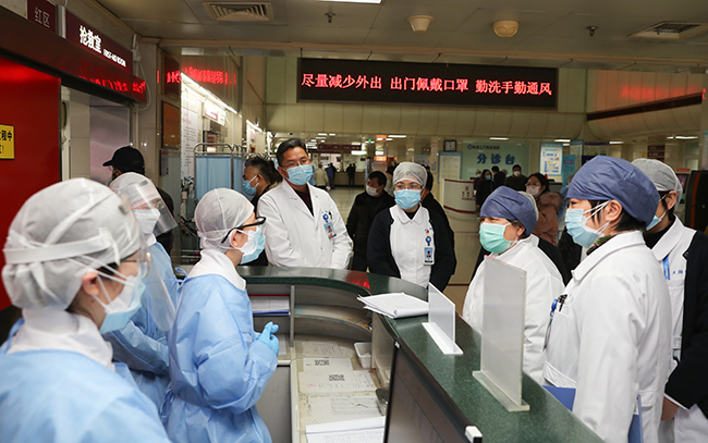 2月28日下午,由省农业农村厅二级巡视员单干银为组长的省疫情防控督查组一行5人对我院新冠肺炎疫情防控工作督导检查,南通市卫健委副主任沈俊涛等陪同督查。我院党委副书记、院长施炜接待了督查组,副院长顾志峰、赵建美陪同检查,医务部、门诊部、护理部、感染办、后勤保障中心、医学装备处、职工健康管理中心、安全保卫处等职能部门参加检查。 副院长赵建美从践行初心切实履行主体责任、领导重视健全组织、优化流程科学医疗救治、加强培训提高防控能力、强化预检分诊营造安全就诊环境、加强发热门诊及隔离病区管理、精心施治确保重症患者有效救治、常抓严抓确保疫情防控到底到边、落实保障加大防控储备、暖心举措坚定信心坚决打赢新冠肺炎疫情防控阻击战等方面汇报了我院新型冠状病毒肺炎疫情防治工作。 督查组一行通过听取汇报、查阅资料、实地查看等方式督查,重点检查了预检分诊、发热门诊、住院病房、抗疫医务人员休息楼、医务人员个人防护情况、医院感染预防和控制工作,详细了解了医院疫情防控工作部署、患者来院就诊、住院患者及陪护管理、医务人员健康管理等相关工作。 省督查组充分肯定了我院疫情感染防控各项工作,对我院新门诊就诊环境、发热门诊布局流程、普通病房住院患者及探视人员管理、医院感染知识培训、医务人员健康管理、疫情防控大数据信息系统预警管控等工作给予了高度肯定,要求我院进一步压实责任,强化管理,众志成城,继续抓好疫情防控各项工作,坚决打赢疫情防控的人民保卫战。陈晓君