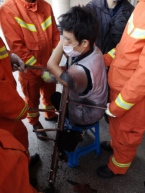 由于搅拌叶体积大,无法进入抢救室,医护人员在抢救室外用床单围起了临时的救治区。顾晓坤与急诊外科医护人员经过充分评估,决定将搅拌叶抽出。医护人员与消防队员经过一个多小时的共同努力,尝试改变了多种方法后,在长时间切割无果的情况下,如果继续切割,患者的情绪难以控制,而且切割过程中产生的振动和热量会进一步的损伤组织,医生果断采取措施,最终成功将穿在手臂上的不锈钢搅拌叶片取出。