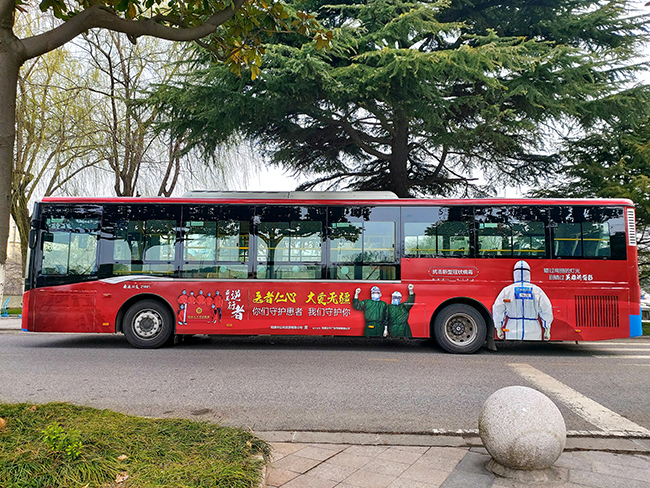 3月11日,南通市区的五条公交线路上,我院援湖北医疗队员的大幅照片作为公益广告印在公交车车身,成为通城一道流动的风景,这五条线路分别是101路、85路、11路、36路、41路。 2月2日和11日,我院连续两批共18名医护人员组成的医疗队分别赴武汉、黄石,投身新冠肺炎患者的救治,18名“逆行者”舍小家为大家,在抗疫最前线已经奋战一月余。疫情面前,他们挺身而出、冲锋在先的责任担当,为战胜疫情坚守前线、无私奉献的家国情怀深深地感动了社会各界。南通市公共交通有限公司、南通文华广告传媒有限公司专门联系我院,主动要求将我院“最美逆行者”作为车身公益广告,成为城市文明形象的流动名片,鼓舞和激励市民同心协力,共克时艰,战胜疫情,为建设美好南通、美好中国贡献力量。傅 轩