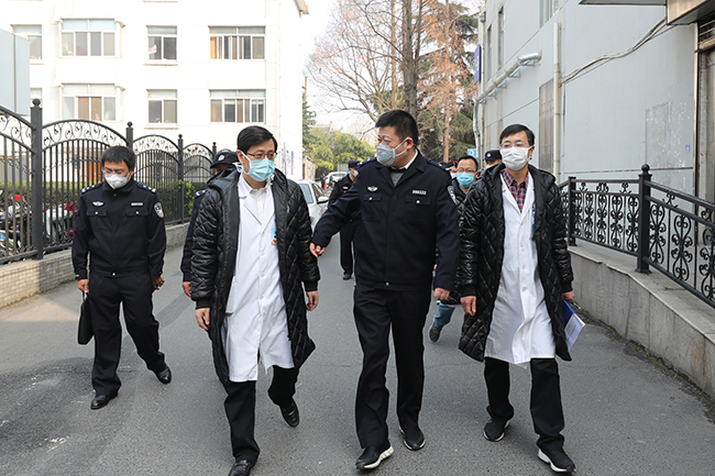 3月11日上午,江苏省公安厅内保总队长薛魁带队的一行5人,在南通市公安局副局长张晓波、内保支队支队长胡向东、崇川分局副局长魏宁等10人陪同下,对我院疫情防控期间安全生产工作、治安防控体系建设、警务室建设等情况进行督导检查。院党委副书记、院长施炜,副院长马强带领相关职能部门、科室负责人接受了检查。 施炜代表医院对专家组的到来表示热烈欢迎,他简要介绍了医院概况、疫情防控、就诊量、安防体系、警务室规范化建设、医警联动等基本情况。专家组实地查看了警务室、发热门诊、消防控制中心等重点部位,详细了解疫情防控、安保队伍建设、重要部位安防措施、视频监控运行、应急处突演练、危险化学品管理、医患纠纷排查化解等情况。安全保卫处工作人员汇报了我院在重点接诊区域、人员密集区域加装人脸识别系统以来,我院医警配合公安机关抓获犯罪嫌疑人的情况,并现场演示了人脸识别系统。 薛魁对我院安全生产工作给予高度评价:领导重视、管理到位、设施完善。同时对今后工作提出了四点要求:一是疫情防范意识决不能放松;二是安防措施决不能放松;三是化解矛盾纠纷决不能放松;四是快速处置涉医案事件决不能放松。 施炜感谢检查组专家莅临指导。他表示,各级公安机关为化解处置医患纠纷、预防打击违法犯罪以及推动我院安防水平整体提升发挥了重要作用。医疗卫生事业关系千家万户,事关民生保障。医院将继续在公安机关的监督指导下,加强医院“智慧安防”建设,深入安全生产专项整治,推进平安医院创建,为医务人员和广大群众提供更加优质高效的安全服务,为全院坚决打赢疫情防控阻击战创造良好的安全环境。倪丽云 单理宇