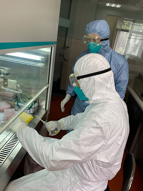 在院党委书记高建林的部署下,院长施炜、副院长赵建美坐镇实验室现场指挥,添置了核酸提取仪、外排式生物安全柜、超净台、高压灭菌锅等设施,符合新冠病毒核酸检测的要求,并成立核酸检测工作组。1月29日,装机后经过忙碌的测试、性能验证,1月30日起正式接受样本检测,通大附院也成为在省卫健委直属单位里率先开展新冠核酸检测的医院。