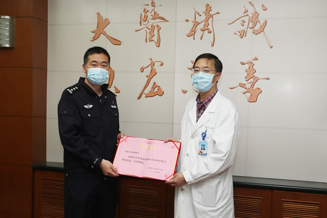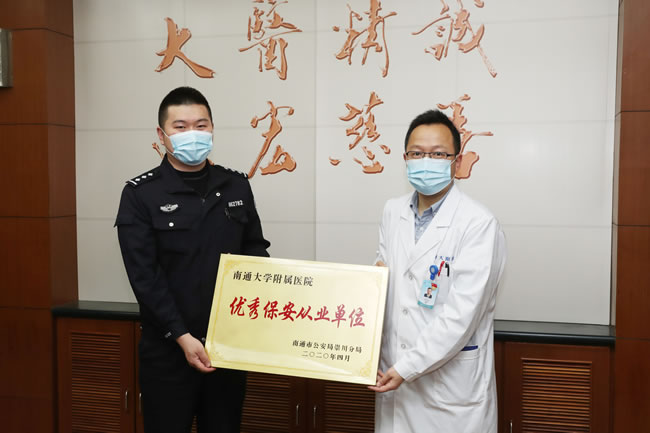 副院长马强、安全保卫处戴林代表医院接受了表彰。马强说,在疫情特殊时期,南通市公安局崇川分局上门颁奖的贴心服务值得学习,向公安战线同志一心为民、爱岗敬业的崇高精神致敬,这是对我院安全保卫工作的充分肯定,是荣耀也是鞭策,这份荣誉更凝聚着公安机关的指导和监督。我们一定会把崇川分局党委的关怀和鼓励化作干好工作的源源动力,履职尽责、不辱使命,深入学习贯彻习近平总书记关于安全生产工作重要指示批示精神,全面开展安全生产专项整治三年行动,拧紧思想上的“总开关”,抓住安全生产责任制的“牛鼻子”,架起安全生产的“高压线”,不断提升安全管理整体水平,继续把优质高效的安全服务送到医院高质量发展第一线,为南通坚决打赢疫情防控阻击战贡献力量。倪丽云