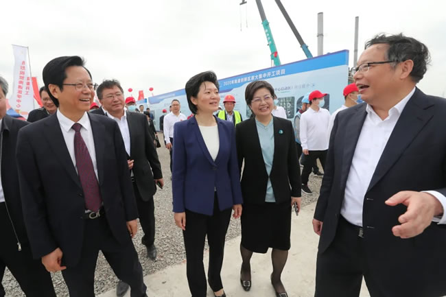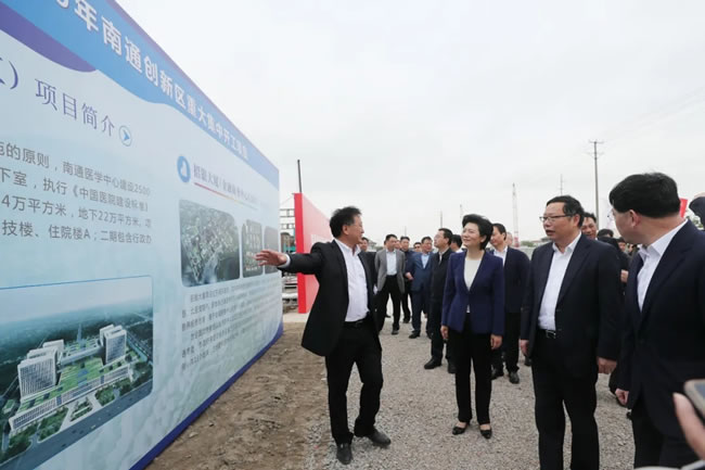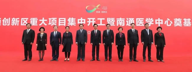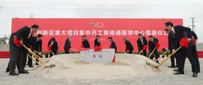 江苏省卫生健康委员会主任、党组书记谭颖,南通市委书记、市人大常委会主任徐惠民,南通市委副书记、市长王晖,南通市政协主席黄巍东,南通市人大常务副主任、党组副书记庄中秋,南通大学党委书记浦玉忠,南通市委副书记、统战部长、南通创新区党工委书记沈雷,南通市委常委、崇川区委书记刘浩,南通市委常委、秘书长吴永宏,南通市政府副市长徐新民,南通市政府副市长陈晓东,南通市政府秘书长陈俊,我院党委书记高建林等出席奠基仪式。 徐惠民宣布南通医学中心一期(通大附院新院区)开工,并与出席仪式的领导一起为我院新院区奠基。 谭颖向南通市委、市政府、南通大学以及南通各相关部门大力支持省属医院在地区的快速发展表示衷心的感谢。她表示,长期以来,南通大学附属医院在全省卫生医疗事业中起到了举足轻重的作用,无论医疗、教学还是科研,在省内医疗行业内均占有重要地位。南通医学中心一期(通大附院新院区)的奠基开工,标志着全省卫生健康领域的重大项目取得了积极进展,也标志着又一个省区域医疗中心建设迈出了新步伐。她希望通大附院以新院区奠基为新起点,推进新院区建设各项工作快速开展,开创医院人才培养、科技创新和社会服务事业的新局面。 王晖在奠基仪式上讲话。他表示,南通创新区坚持高起点规划、高标准建设、高效率推进,一批领军型院所纷纷签约落户,“三年见雏形”的目标如期实现。今天集中开工的南通医学中心等6个重大项目,投资规模高达170多亿元,对于南通创新区完善城市功能、集聚高端人才、增进民生福祉,必将产生重要的引领作用和示范效应。他希望南通创新区以此次重大项目集中开工为号令,只争朝夕、真抓实干,加快描绘出“一大三小四中心”的现实模样。 沈雷首先介绍了我院新院区的相关情况。他说,南通医学中心是省明确的苏中唯一一家高水平省级综合医疗中心,是南通打造具有区域影响力的长三角北翼和沿海经济带高水平医疗服务高地的重要支撑。一期项目即通大附院新院区的实施是贯彻落实全省遵循新发展理念、持续排查解决突出民生问题工作会议精神,着力补齐医疗卫生等民生和社会事业领域突出短板的重要举措。 高建林在发言中表示,通大附院是省卫健委确定的高水平省级综合类医疗中心,是具有区域影响力长三角北翼和沿海经济带高水平医疗服务高地。为解决老院区交通拥堵、空间受限等现状,提升南通优质医疗资源的服务能力,在省市两级党委、政府及省市卫生健康委,南通大学,相关各部门及社会各界的鼎力支持下,医院启动新院区建设。这是百年大计,更是千秋大业,新院区这艘“巨轮”,是医院增强核心竞争力的硬核驱动,必将为江海百姓带来更多、更新、更实惠、更便捷的健康福祉。医院将竭尽智慧和才能,挥洒汗水和心血,不负各级领导的信任重托,不负江海儿女的期待关注,共同奏响南通发展进入更新时代的铿锵乐章。<, SECTION styl, , e="M, AX-WIDTH: 100%; PADDI, NG-BOTTOM: 0, px; PADDING-TOP: 0px; PADDING-LEFT: 0px; MARGIN: 0px 8px; LINE-HEIGHT: 2em; PADDING-RIGHT: 0px; overflow-wrap: break-word; B: border-box"> 出席仪式的相关领导视察了我院新院区地块,并就抓好疫情防控、安全生产、科学调度、推动项目早日竣工提出具体要求。