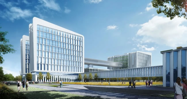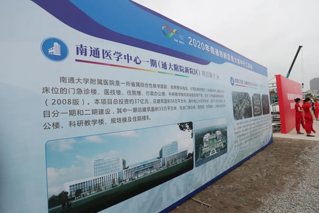 市委、市政府相关副秘书长,南通创新区建设领导小组成员单位和有关部门主要负责人,南通经济技术开发区、崇川区、通州区主要负责人,驻通各媒体,我院全体院领导、临床与职能科室负责人及医护员工代表等参加了奠基仪式。 我院新院区地处创新区东区先锋地块,周边市政基础设施基本到位,与地铁二号线无缝衔接,与现院区在同一地铁线上,同时毗邻南通新机场、火车东站、沿海高速和通盛大道高架出入口,随着主城区、通州、海门联动发展,主城区将逐渐东移,该地块将处于未来城市中心区域。 新院区总占地面积281亩,总建筑56.6万平方米,容纳床位2500张,分三期建成。已经开工的一期工程包括门急诊、医技、住院楼等。二期工程包括体检中心、住院药房、住院影像、标准护理单元等。三期工程包括行政、科研、教学、保障等辅助用房。 新院区坚持“以患者为中心、以流程为主线”,注重绿色融合、高效便捷、科技创新、人文关怀。一期、二期采取“一轴、一园、两翼”的规划布局结构,通过一条南北方向的主轴串联起南北两个地块,两个地块间建有共享花园,住院、后勤、教学、培训等分置于主轴两边形成两翼,构建内部共享交流的专属空间。门诊楼沿北侧主广场一字展开,形成完整的城市主界面,为患者就医打造最佳服务空间。