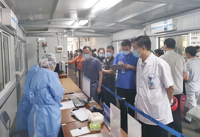 根据省卫健委《关于做好当前安全生产工作的紧急通知》的要求,切实做好梅雨季节的安全生产工作,副院长马强近日带领安全保卫处、后勤服务保障中心负责人开展了梅雨季节安全生产专项检查。 本轮共检查14个点位,内容包括疫情防控期间临时搭建的预检分诊点、高层建筑、院内广告横幅、建筑工地、老旧建筑、院内道路、地下车库排水等。检查共发现13项问题隐患,12项均现场整改到位,未能现场整改的问题隐患1项,现场下发整改通知书,责令相关部门及科室6号30日前完成整改。 马强提出了工作要求:要高度重视梅雨季节的安全生产工作, 加强排查和监管,采取坚决果断措施,切实排除各类安全隐患;要加固各类在建工地脚手架、塔吊,对抗风能力差的危旧房屋和树木要防止倒塌伤人;要加强老旧电路、电气设备检查检修,防止漏电、触电事故;要准备好各类排水工具、器材和机械设备,防止出现内涝,确保医疗卫生单位进出路通畅,地下车库排水顺畅;加强组织领导,明确责任分工,针对梅雨季节雨量集中、雨期长的特点在每天两次的巡查基础上开展再排查。倪丽云