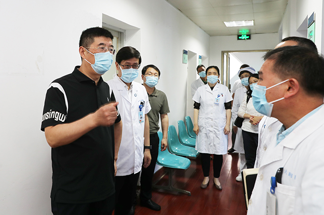 6月23日上午,省卫生健康委副主任、党组成员、一级巡视员李少冬率法规处处长朱春燕、医政医管处处长刘益兵、基层卫生健康处处长姜仑等一行,来院就新冠肺炎疫情防控、《基本医疗卫生与健康促进法》的宣传普及等进行督查,并对医院发展建设的相关情况进行调研。院领导施炜、邢晓源、马强、史加海、赵建美及相关职能部门负责人参加了督查调研。 院党委副书记、院长施炜首先介绍了医院概况,着重介绍了我院新院区(南通医学中心)的建设情况,随后从十个方面详细汇报了医院一手抓医疗服务,一手抓疫情防控,齐抓共管,同步推进,不麻痹、不厌战、不松懈,抓紧抓实抓细各项常态化疫情防控的有关工作,以及宣传普及《基本医疗卫生与健康促进法》所开展的线上线下多层次的工作。 在听取了汇报后,李少冬高度肯定了我院疫情防控工作,全院上下坚决做到守土有责、守土担责、守土尽责,守住也守好了疫情防控的最后一道防线。疫情防控中采取的一系列创新做法比如运用大数据筛查、组建院内督查队伍参与防控等,值得在全省推广。他也希望医院继续加强精准防控,时刻绷紧防范疫情风险和院内感染这根弦,继续打好新冠肺炎疫情防控的持久战。 在详细了解了医院发展建设特别是新院区的进展后,李少冬高度肯定了医院在现任领导班子的带领下取得的发展,他希望医院借助“十四五”规划的契机,集中精力抓内涵、学科、顶尖骨干人才的建设,高原造峰,把医院建成省内顶尖、全国一流、世界知名的综合性医院。 李少冬同时还就医院党风廉政建设、信息化建设、安全生产、《基本医疗卫生与健康促进法》的深入普及宣传等提出具体要求,并实地查看了我院发热门诊,对发热门诊的布局及设备设施、人员配备、诊疗流程表示充分肯定。 督查调研中,朱春燕、刘益兵、姜仑分别就医院学科与人才建设、法治化建设、强基层建设等提出具体的意见和建议。 傅 轩