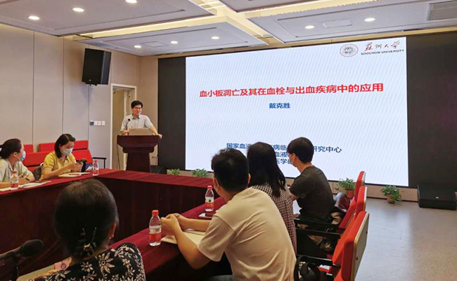近日,我院“未来医学家沙龙”邀请江苏省血液研究所副所长、苏州大学特聘教授戴克胜来院做了题为《血小板凋亡及其在血栓与出血性疾病中的作用》的报告。40余名沙龙成员及学员参加活动,活动由血液内科主任刘红主持。 戴克胜教授用通俗易懂的语言向学员们介绍了血小板在止血、感染、肿瘤疾病进展中的生理和病理作用,并结合临床实际分享了近年来他的团队在血小板领域做出的许多重要的科研工作成果。报告结束后,学员向戴克胜教授提出了他们在科研和临床实践中遇到的种种问题,戴克胜一一作了解答并与学员们展开了热烈的讨论。 戴克胜现任国家卫健委血栓与止血重点实验室副主任、国家血液系统疾病临床医学研究中心副主任、唐仲英医学研究院副院长。长期从事血栓与出血性疾病发病机制,血小板和微循环病生理功能调控机制及相关疾病的诊治研究。主持国家自然科学基金重点项目、重点国际合作项目等多项国家级课题,在JCI、PNAS、Blood、Circ Res等国内外学术期刊发表论文一百余篇。当选国际宇航科学院院士,入选教育部“新世纪优秀人才支持计划”、江苏省“双创团队”领军人才、“双创”人才、“姑苏卫生领军人才”,担任中国生理学会血栓与止血专委会主任委员,中国病生理学会微循环专业委员会主任委员,世界中医药学会联合会气血专业委员会常务理事,中国病生理学会实验血液学专委会血管生物学组副组长,中华血液学分会血栓与止血学组委员,以及多个中英文杂志编委等。周 鹭
