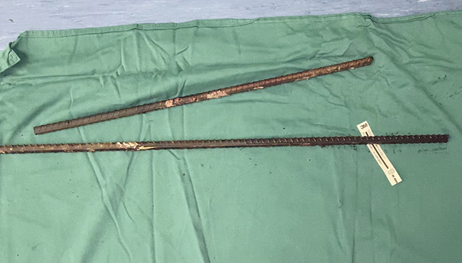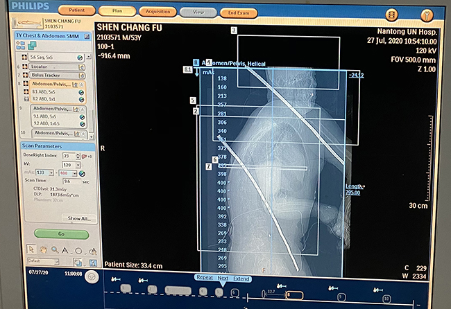 7月27日上午,在如皋东陈某工地,一男子在施工中不小心滑倒坠落,两根钢筋分别从颈部、胸腹部刺穿,鲜血浸湿了衣服,情况紧急,被120紧急送至通大附院。 受伤男子姓沈,今年53岁。当他被送至通大附院抢救室时,事先接到通知的急诊外科主任医师朱东波率团队早已等候在抢救室,同时根据120反馈的伤者病情,迅速集结了包括胸外科、普外科、耳鼻喉科、麻醉科在内的多学科诊疗组,此外,进行钢筋切割的120消防官兵也在现场候命。 “当务之急是切断外露部分的钢筋,以便进行CT等影像学检查。” 朱东波说,虽然伤者的生命体征平稳,神志清醒,但钢筋是否损伤血管和重要的脏器仍情况不明,必须进行相关的影像学等检查。江苏省创伤救治中心,虽说急诊外科常有因意外受伤的病人,但两根钢筋穿体还比较少见。 由于时间紧迫,在确保伤者安全的前提下,医护人员在抢救室外设置了“临时抢救室”。消防官兵在切割时也相当小心,紧紧地握着切割器材,尽可能减少切割带来的震动。不到半小时,消防官兵先后采用液压剪和电锯对两根钢筋成功进行了切割。 随后伤者被紧急送至CT检查,为了确保安全,急诊外科医师丁剑锋、心胸外科史辉博士全程陪同。万幸的是,经过CT检查发现,左颈部被刺穿的钢筋与主动脉相距只在毫厘间;右胸腹部的钢筋也与颈部血管神经、肺、肝脏等重要脏器擦肩而过。就连医生也感叹,这样的意外伤竟是如此的幸运。 在通大附院急诊手术室,手术接力进行。先由急诊外科朱东波团队取出颈部钢筋,再由心胸外科联合急诊外科取出胸腹部钢筋。整个手术时间一个多小时。由于钢筋表面有凹凸不平的螺纹,摩擦力大,毛刺比较多,稍微移动,如直接拔除可能损及血管,朱东波在抽出颈部钢筋时用手指紧紧护住颈动脉,小心谨慎地将钢筋取出。 因为胸腔内有心脏、主动脉、肺等重要脏器,钢筋通过腹部穿透了胸腔,心胸外科史辉博士为了防止在拔出钢筋的过程中,胸部重要脏器的二次损伤,在胸部做了一个小切口,打开胸腔后,一方面可以直视胸腔钢筋的穿透位置,也可以在拔除的过程中保护脏器,减少二次损伤,同时还探查了胸腔内、肺表面、膈肌、肝脏有无破口和出血,确保万无一失的前提下顺利将钢筋取出。 手术后,伤者被送至急诊外科病房进一步观察治疗。 据朱东波介绍,通大附院急诊外科经常会收治类似钢筋插入身体的意外伤。他提醒说,当钢筋等异物插入身体,钢筋等异物刺入体内会造成穿透伤或盲管伤,贸然拔出反而会破坏血管、神经原有的解剖结构,造成致命大出血等二次伤害。他表示,在遇到这种异物插入身体的意外伤时,要及时叫120将伤者连带着异物一起迅速送医。转运途中要尽量减少剧烈地晃动,尽快送至医院处置。邵勇林