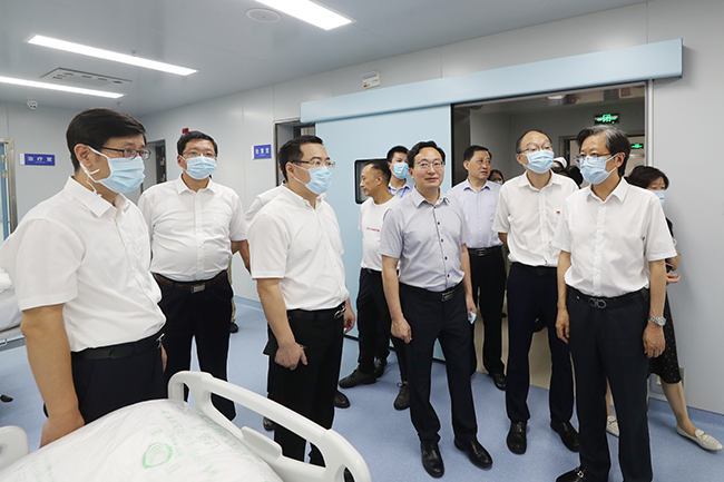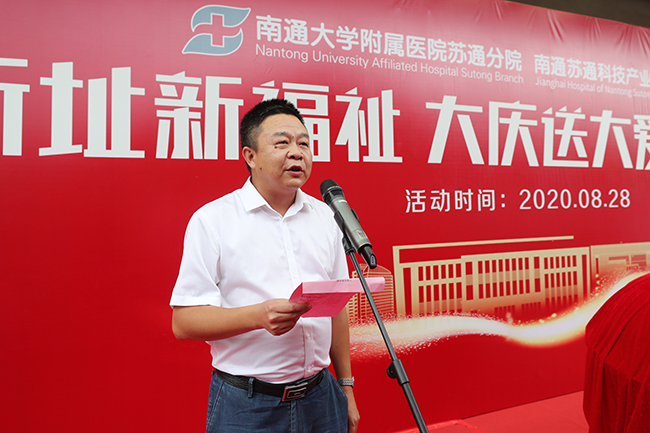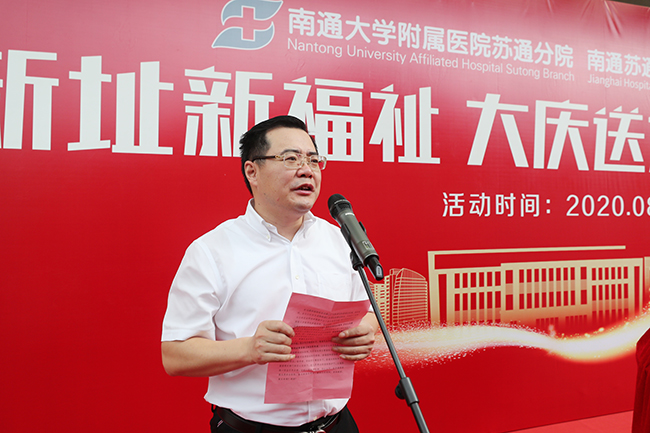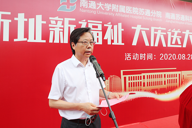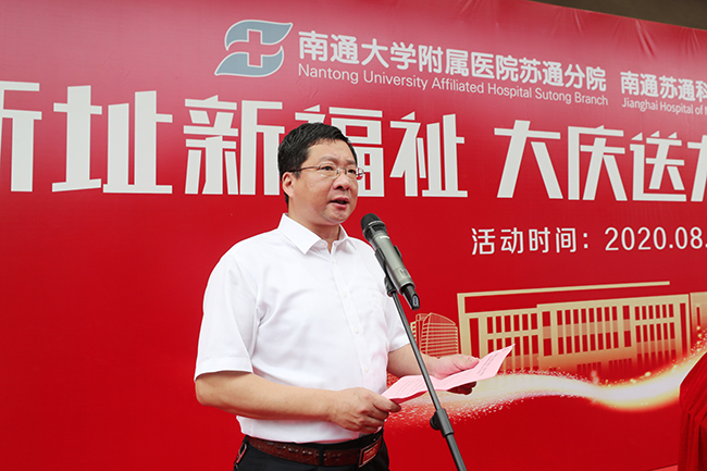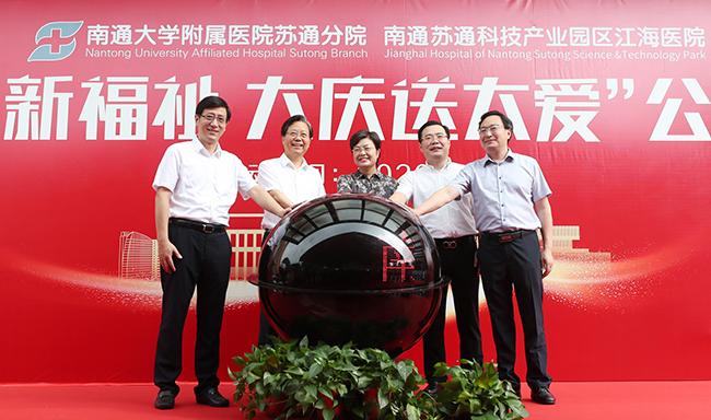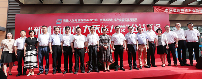 8月28日上午,南通大学附属医院苏通分院暨苏通科技产业园区江海医院正式启用,这是在我院相继初步实现“新院梦”“百强梦”的喜庆日子里的又一盛事,也是今年继家纺城分院启用后建立的又一“院府合作”的紧密型医联体,更是我院落实国家新医改政策,服务社会、福泽江海百姓的又一新平台。 院党委书记高建林,院党委副书记、院长施炜,南通市卫生健康委党组书记、主任陈冬梅,市医疗保障局局长张兵,苏锡通科技产业园区党工委副书记、管委会主任虞越嵩,园区党工委副书记王鸣昊,园区党工委副书记、纪工委书记金志伟,我院副院长顾志峰、赵建美、鲁菊英等出席启用典礼。典礼由园区党工委委员、管委会副主任诸培国主持。出席典礼的领导共同推动启动球,宣告南通大学附属医院苏通分院暨苏通科技产业园区江海医院正式启用。 高建林在致辞中介绍了我院近几年建设发展取得的成绩,特别是经过三年的奋斗,在中国医学科学院近期发布的2019年全国医院科技量值排行榜中,我院名列96位,荣登全国医院排行百强榜。他表示,我院将充分发挥具有区域影响力的长三角北翼和沿海经济带高水平医疗服务高地、高水平省级综合类医疗中心在医、教、研、管等方面优势和重点学科的技术辐射能力,以“互惠、互利、便民、利民”为原则,切实推动医疗资源纵向流动,实现分级诊疗、双向转诊,优化医疗资源结构布局,把江海医院各项工作提升到更高的层次,为苏锡通园区百姓提升健康水平、推动我市医疗卫生事业发展再上新台阶作出更大贡献。 虞越嵩在致辞中表示,江海医院依托实力雄厚的通大附院,采用同质化医联体运营模式开展营运,格调高雅,环境优美,力量齐全,设施完善,真正实现了让园区老百姓在家门口享受优质医疗资源。他希望江海医院的全体医务工作者要传承和弘扬抗疫精神、护佑生命健康,锤炼医德医术、提升医疗水平,满足患者需求、提高服务质量,把江海医院办成一所百姓信赖、同行认可、政府满意的高品质综合医院。 启用典礼上,副院长顾志峰详细介绍了苏通分院的建设情况。 启动典礼后,与会领导视察了苏通分院的门急诊及住院楼,对医院合理布局、科学管理、完善流程等提出了具体的意见和建议。 南通大学附属医院苏通分院以二级综合医院的规模建设,按照“高起点规划、专业化设计、一步到位”的原则,由园区管委会投资9700余万元。医院占地面积为24亩,建筑面积约18430平方米,核定床位120张。园区政府委托我院进行全面托管,借助我院作为综合性大学附属医院在医疗、教学、科研、管理等方面优势和重点学科的技术辐射能力,采用分级诊疗、双向转诊等模式,实现资源共享、优势互补。由我院统筹派出管理及医疗团队协助江海医院分阶段、逐步建立健全临床各科室,实现同质化管理,切实为园区人民提供有效、经济、方便、综合、连续的卫生健康服务。 当天上午还举行了“新址新福祉 大庆送大爱”公益义诊,21个科室的二十多位副高级以上职称专家现场义诊,义诊采取一医一患一诊室,半天时间专家们共为500多名群众提供了义诊咨询及医技检查服务。 我院相关职能部门负责人、专家代表,市卫健委、市医保局相关负责人,园区机关各部门、单位,开发区社会事业局,兄弟医疗单位、江海分院及有关媒体单位的代表参加了启用典礼。邵勇林