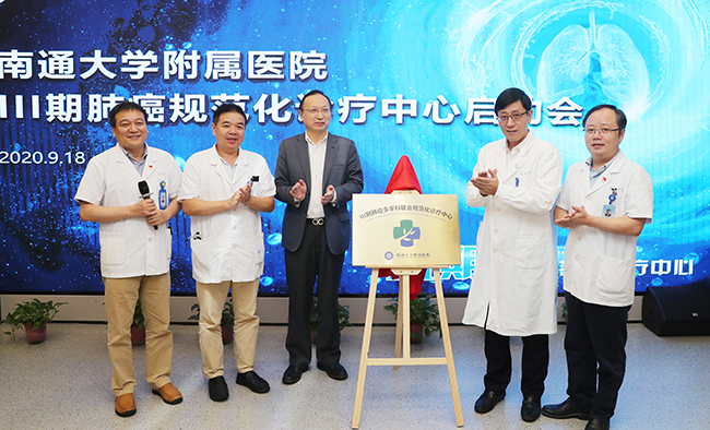 近日,我院举办了III期肺癌规范化诊疗中心启动揭牌仪式,同济大学附属上海肺科医院周彩存教授,院党委副书记、院长施炜,副院长史加海,临床首席专家倪松石教授等出席仪式并致词,共同为中心揭牌。启动会由呼吸与危重症医学科主任冯健主持。 我院III期肺癌规范化诊疗中心由副院长、胸外科主任医师史加海教授为主席,呼吸与危重症医学科主任冯健教授为副主席,团队成员来自呼吸与危重症医学科、胸外科、肿瘤化疗科、肿瘤放疗科、病理科、影像科等各科室的专家,依托大型综合医院优质的多学科平台以及教学医院优势,致力于打造一流的肺癌诊疗品牌,针对III期肺癌的高度异质性和复杂性,通过多学科专家共同讨论、决策,为Ⅲ期肺癌患者制定个体化的最佳治疗方案,并提供就诊的快速通道及“一站式服务中心”,惠及更多肺癌患者。 启动会后,周彩存教授、肿瘤化疗科副主任医师刘军、胸外科主任医师陈建乐及呼吸与危重症医学科主任医师周娟分别做了《免疫治疗引领肺癌治疗新标准》《三期非小细胞肺癌诊疗策略》《免疫治疗在三期肺癌MDT中新进展》及《肺癌免疫治疗的irAE管理》的专题讲座,并就III期中心MDT建设的难点及重点展开了热烈讨论。许立芹