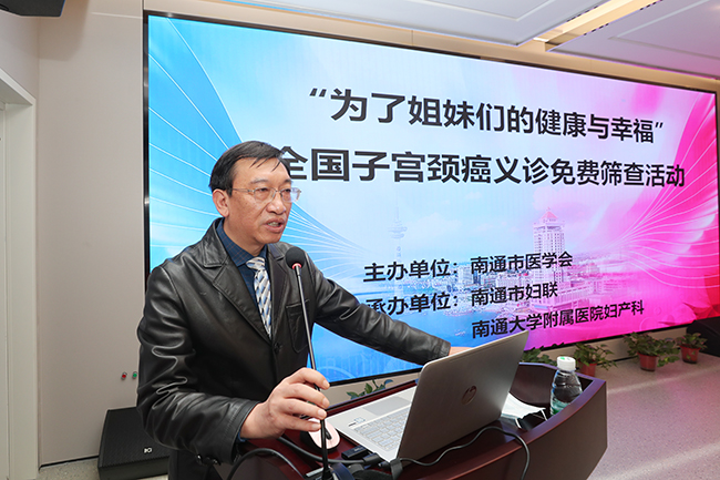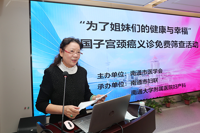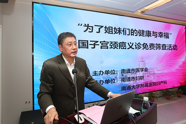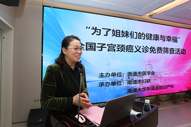11月1日上午,由南通市医学会主办,我院妇产科党支部与南通市妇联承办的“为了姐妹们的健康与幸福”全国宫颈癌义诊筛查活动暨妇产科党支部党日活动在我院新门诊楼举行。 本次义诊活动旨在增强社会对妇女的关爱,促进社会和谐发展,对低收入女性进行宫颈癌筛查,提高女性健康意识和对肿瘤疾病的预防、检测、诊断及治疗的知晓度,让妇女真正感受到关爱,切实把健康和关怀送到她们身边。 南通市医学会妇产科分会主任委员、我院妇产科科主任张玉泉教授带领由多位党员医护专家组成的团队,为全市从事家政工作的100名女性进行宫颈癌免费义诊筛查。南通市医学会会长王晓敏,南通市妇联主席秦艳秋、我院党委常务副书记马卫东分别致辞,共同表达了为江海百姓守望健康,提高女性群体对宫颈癌的防治意识和防治水平、提升妇女健康水平和生活质量,促进公众对女性健康的关注和关爱的愿望。张玉泉教授为筛查对象就宫颈癌筛查及HPV疫苗的相关知识进行了科普讲座。随后,专家团队为义诊对象进行TCT及HPV的宫颈癌筛查。 此次活动受到了大家的一致好评,义诊医护团队也深受鼓舞,表示将继续践行健康中国战略,为共建共享健康妇幼的良好氛围,推进健康中国行动和妇幼健康促进专项行动的落实作出贡献。黄海燕