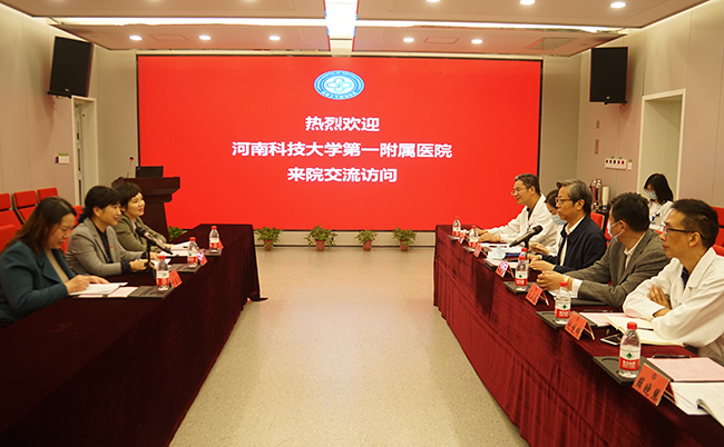 11月12日,河南科技大学第一附属医院党委副书记祝晓宇率党办主任、组织科科长一行来院,就医院中层干部管理、医院文化建设工作进行交流。院党委书记高建林、党委常务副书记马卫东及相关职能部门负责人参加交流。 交流会上,高建林对河南科技大学第一附属医院代表团远道而来表示热烈欢迎,他从我院历史、基础建设、学科建设、人才培养等方面对来宾作了详细的情况介绍,对《5G时代医院品牌建设的“南通模式”》进行了专题解读,诠释了《砥砺百十载 精诚逐未来》发展理念。党委组织部部长倪健辉对就医院中层干部换届和管理等方面的经验做法作了分享交流。 祝晓宇高度赞赏我院在基础建设、文化建设、干部管理等方面的成绩,表示两家医院具有很多相似之处,来院学习交流具有很大的借鉴和学习价值,希望今后继续加强学习与交流,以促进提高医院管理水平。交流会后,代表团一行实地考察了我院新门诊等。 傅 轩