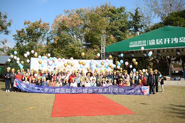 天高云淡,秋色怡人。我院两百余人于11月6日、13日分两批次在开沙岛露营地举办了主题为“快乐减压行 员工一家亲”的第28届整生日活动。 在工会和离退办的精心组织下,头戴生日帽的老少寿星们,像明星一样走过红地毯,为庆祝活动揭开了帷幕,在签名墙签上大名,在气球上写下心愿,一起放飞气球、放飞梦想。 中午的大锅灶烹饪比赛,一下子把大家拉回了孩提时代,酱香四逸的红烧肉、 口味浓郁的红烧鱼、糖醋藕片、蒜香油麦菜,就着长寿面被大家一扫而光。意犹未尽,点上蜡烛,唱起生日快乐歌,一起对着生日蛋糕许下愿望,其乐融融,如同一家人。 下午,离退休老同志在KTV房车里一展歌喉,再乘坐观光车游览风景。年轻的寿星们童心大发,踊跃参与冰壶比赛、骑马、丛林探险等游戏项目,现场欢声阵阵,笑语片片,仿佛找回了童年的乐趣。真挚的友谊跟随着活动升华,现场一片健康快乐和谐氛围,一派凝心聚力祥和景象。同时院工会还为寿星们准备了精美的小礼物,以表达祝福,虽是一个小小的举动,却倾注了医院对员工的亲切关爱,真情的关怀洒向了医院的每个角落,温暖了员工的心。 每年一届的员工整生日庆祝活动是医院职工文化生活的经典项目,今年别出心裁的户外减压庆生活动,不仅促进了同事间情感交流,凝心聚力,释放压力,也增强了员工的归属感、获得感、幸福感,体现了院部对职工的关注、关爱、细心、用心,体现了通大附院大家庭的人文关怀。活动结束后,一位70岁生日的寿星在朋友圈动情地说到:相约十年后再相会,叙旧论新,不见不散,相约到永远。孙敬峰 方劲松
