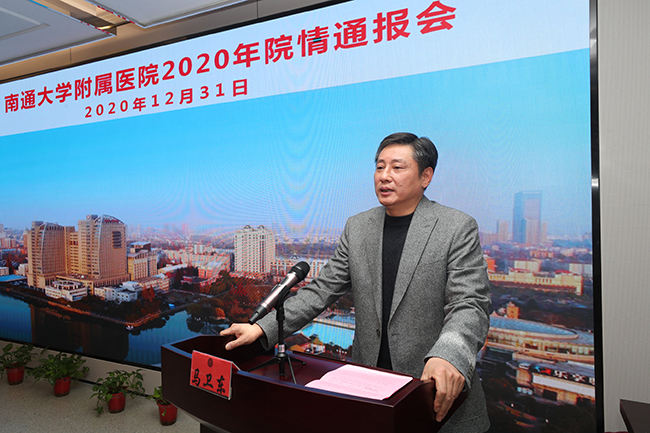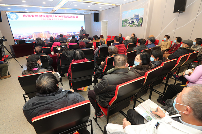 12月31日下午,院党委书记高建林向离退休职工代表通报院情。享受国务院特殊津贴的老专家代表、支部书记及支委、老体协委员以及退休职工老同志代表应邀参会。会议由院党委常务副书记马卫东主持。 会上,高建林从目前医院的现状、年度主要工作、今后奋斗目标三个方面详细地阐述了2020年医院事业发展情况,并提出今后努力的方向。重点介绍了抗击新冠疫情、深化机制改革落实的情况、全国文明单位的实现。同时,他对老同志们一如既往地关心医院建设,为医院发展建言献策表示衷心感谢,并希望老同志们能继续心系医院,发挥余热。 老同志们在听取了院情通报后,对“百强梦”的初步实现、“新院梦”的初步成真及未来一段时间的科学规划倍感欣喜,他们感谢医院对离退休职工的关怀,表示今后会一如既往地关心和支持医院的工作,并祝愿医院的明天更美好。朱晓菁