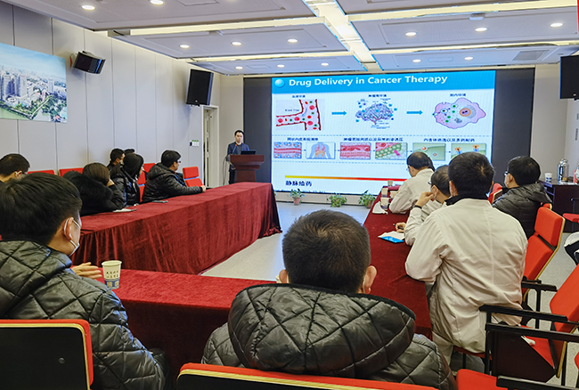 近日,“未来医学家沙龙”在门诊楼九楼会议室举办了第五期第十五次活动,邀请浙江大学药学院特聘研究员李洪军作“基于微纳递送体系的肿瘤精准治疗策略”的讲座。副院长顾志峰与近80名沙龙成员参加活动,活动由沙龙第五期召集人杨晓清主持。 李洪军以三级火箭发送卫星为例,形象地描述了多级药物递送体系将药物从静脉经过复杂肿瘤微环境最终递送到特定细胞内的基本策略,以自身研究成果为例,阐述了超快微环境响应系统在肿瘤治疗中如何实现分时分空间分级递送药物。还介绍了团队在肿瘤免疫治疗中的最新成果——递送免疫佐剂至肿瘤树突状细胞中,从而增强肿瘤免疫治疗的疗效。 顾志峰在点评时说,智能给药是医学领域的难题,也是诊断治疗的终极目标。当前基金委专门成立的交叉学部主要面向免疫和材料的交叉研究,他鼓励大家充分运用这难得的契机与李洪军及浙江大学药学院开展科研合作。 李洪军在中国科学技术大学获得生物学博士学位后,先后在华南理工大学、加州大学洛杉矶分校(UCLA)从事博士后研究工作。研究方向包括新型工程化免疫细胞用于肿瘤免疫治疗的开发、智能型药物递送系统/器件的开发等。入选第四届中国科协“青年人才托举工程”,主持国家自然科学基金青年等5项科研项目。张海健