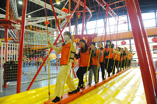 近日,在人力资源处和工会的组织下,两百多名新入职的员工来到南通乐奇运动派,开展了一场“凝心聚力、追逐梦想”的主题团建活动。 在教练的带领下,新职工们渐渐从陌生到熟悉,随着破冰游戏、趣味惩罚活动的进行,欢乐的气氛瞬间蔓延开来,大家分成六队,选出组长,经过讨论定了新潮的队名和响亮的口号,共同协作完成了躲避球、气泡碰碰球、角斗士PK、梅花桩、眼疾手快、多人荡秋千等六个项目的团建活动。现场气氛既紧张又欢快,在一片笑声中,彼此间拉近了距离,增进了友谊,充分发挥出团队协作精神。 新职工们纷纷表示,将尽快融入附院这个大家庭中,凭着一股不服输、不认输、不放弃的韧劲,在今后的工作学习中努力拼搏,乘风破浪,勇往直前。孙敬峰