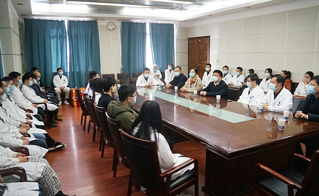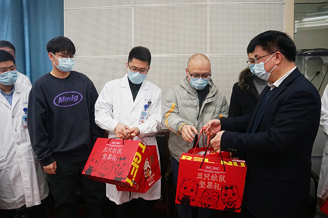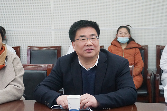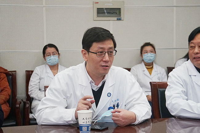 2月10日上午,南通大学副校长董正超,南通大学研究生院院长朱俐、副院长徐毅,南通大学医学院党委副书记宋建等一行来我院看望慰问春节期间留通研究生代表。院党委副书记、院长施炜,南通大学医学院常务副院长兼我院副院长桑爱民,副院长顾志峰等陪同看望。 董正超对研究生们克服困难,积极响应国家倡导的就地过年、减少人员流动、做好疫情防控号召表示感谢,鼓励同学们互相关心关爱,与家长和老师保持联系,合理安排时间,兼顾好学习、工作和生活安排,有困难随时向学校和医院反映,校院双方将共同为大家做好留通期间的生活保障工作。 施炜、朱俐、桑爱民分别感谢了同学们对校院工作安排的理解支持与配合,表示校院双方一定会共同做好同学们留通期间的后勤保障工作,让就地过年的同学感受到家一般的温暖,并通过同学们给他们的家人送上了新年祝福。 研究生代表以较高的政治站位对留通过年表示理解,对学校与医院的关心关爱与生活上的精心安排表示衷心感谢,相信在通一定会过上一个同样祥和快乐的新春佳节。朱雨秋