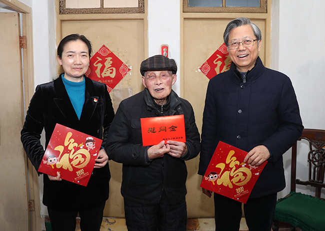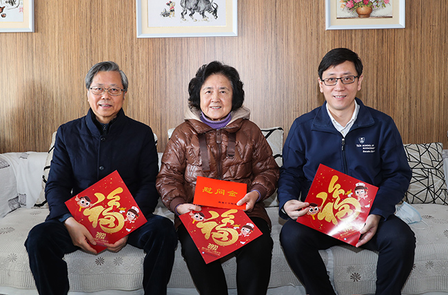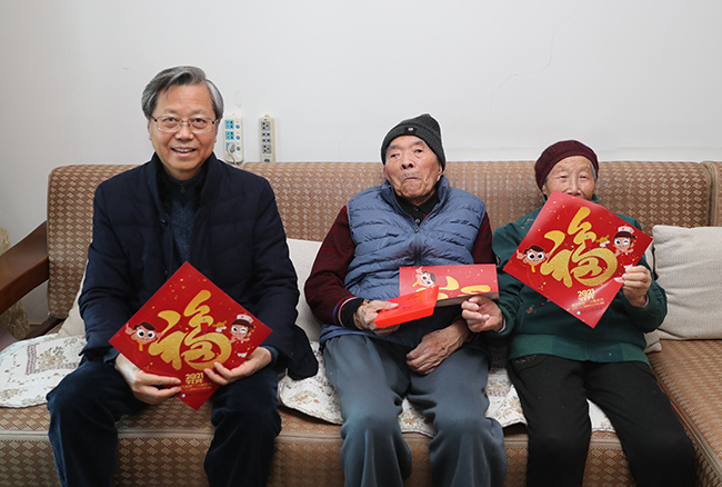 2月9日,在新春佳节来临之际,院党委书记高建林,院党委副书记、院长施炜,院党委常务副书记马卫东等院领导分别带队走访慰问了医院老领导、老专家代表和我院仅有的两位百岁老职工,为他们送去慰问和新春祝福。 院领导分别深入到老领导、老专家代表和两位百岁老职工的家中看望问候,关切地询问他们的健康状况和生活情况,向他们介绍2020年医院各项事业所取得的成绩,感谢他们过去对医院事业发展做出的贡献并一如既往地关心和支持医院各项工作,真诚地邀请他们常“回家”看看。高建林在看望两位百岁老职工时表示,非常高兴通大附院大家庭在恰逢百十年院庆时首次出现了百岁寿星,希望寿星们保重好身体,共同迎接更加美好的未来,也希望附院大家庭的百岁寿星们越来越多,安康幸福。 慰问中,老领导李道生谈到,她近期一直在为医院建院110周年酝酿练习书法题字;百岁老职工在聊天中反复提及要确保自己每月都能定期向党组织缴纳党费。 老领导、老专家和百岁老寿星们为新时期医院发展的新面貌感到欢欣鼓舞,对医院的关怀表示感谢,并祝愿医院发展更上一个新台阶。傅 轩
