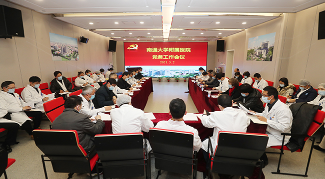 3月2日下午,我院召开2021年第一次党务工作会议,专题传达学习习近平总书记2月20日在党史学习教育动员大会上的讲话精神。院党委书记高建林,党委副书记、院长施炜,党委常务副书记马卫东,党委副书记兼纪委书记邢晓源出席会议。会议由院党委常务副书记马卫东主持。医院各党总支(党工委)、党支部书记,党委职能部门和群团组织负责人约60人参加会议。 会上,高建林对近一段时期医院党务工作进行了重点部署。他强调,各级基层党组织、各部门和科室一要认真研读学习、精心组织落实2021年医院党政工作要点、110项重点任务及10个重大项目,结合党组织和科室实际扎实开展工作;二要按照上级关于开展党史学习教育工作部署,形成个性化的学习教育方案;三要以公立医院党建工作质量评价为契机,进一步提升支部党建工作水平和质量;四要根据院党委即将下达的《南通大学附属医院内部组织机构党政共同负责制实施办法》相关要求,在党委领导下的院长负责制这一领导与管理新体制下,探索并不断完善二级党组织工作体制、机制的转变。 高建林结合自身学习感悟,提出“五个把握”与大家共勉:一是把握时势,结合习近平新时代中国特色社会主义思想发展脉络,学党史、悟思想、办实事、开新局,推动2021年医院各项事业高质量、跨越式、特色化、可持续发展;二是把握关节,2021年是中国共产党建党100周年,是“十四五”规划的开局之年,是通大附院建院110周年,各级基层党组织和广大党员干部要积极传承新时代张謇精神,弘扬爱国精神和为民情怀,激发艰苦奋斗和创业意志,坚定“幸福都是奋斗出来的”的信念,积极进取,勇于改革,开拓创新;三是把握融合,将党的建设与业务工作、管理工作深度融合,齐头并进,齐抓共管;四是把握创新,做到工作方法创新,工作方式多样,工作理念常进;五是把握留痕,认真、及时、准确做好实录,做到有人负责、有章可循、有据可查、有序推进。 高建林指出,党建工作是一切工作的引领、前提、基础和保障,各级基层党组织要充分发挥战斗堡垒作用,把工作做在实处、做足实锤、做出实效、做成实绩、做好实录。 马卫东带领与会人员学习了习近平总书记在党史学习教育动员大会上的讲话精神和全省党史学习教育动员会议精神。 院党委职能部门和群团组织负责人汇报了2021年第一季度工作安排。叶伊湉