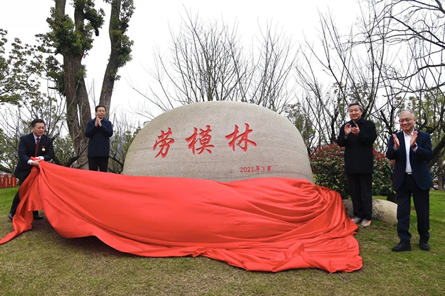 又 讯 3月12日,市委副书记、市长王晖,市政协主席黄巍东,市人大常委会常务副主任、党组副书记庄中秋,市委副书记沈雷等四套班子领导来到位于南通创新区的森林公园南侧紫琅湿地与劳模先进代表一起参加义务植树活动。 王晖、黄巍东、庄中秋与我院全国劳模代表黄中伟共同为“劳模林”揭牌。这片集教育、休闲、观赏等功能于一体的“劳模林”由市总工会、市自然资源和规划局、南通创新区共同打造,承载着劳动者的初心和使命,是展示劳模风采、弘扬劳模精神,展现积极向上、奋发有为时代风貌的重要阵地,必将鼓舞更多的江海劳动者,以勇当“两争一前列”排头兵的姿态,奋力书写“强富美高”新南通建设的崭新篇章。方劲松