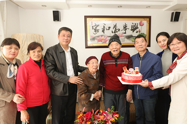 3月29日,院党委常务副书记马卫东带领工会、离退办负责人,带着祝福和关怀走进我院百岁老人、离休干部顾锡锦家中,为他庆祝百岁寿辰。大家与老人一起切蛋糕,共同唱起了《生日快乐》歌,老人家中洋溢着祝福的温情。马卫东表示,尊老、敬老、爱老是中华民族的传统美德,也是全社会的共同责任。我院三大梦想之一的“康养梦”正是致力于为所有职工创造更加优良的生活环境,让每一位离退休职工都老有所养、老有所依、老有所为、老有所乐。 顾锡锦老人于1922年3月出生,中共党员,1959年10月至1984年1月在我院工作,期间曾下放南通县新开供销社工作。1984年1月从医院正式离休。是我院第一位百岁老人。 目前,我院有51位90岁以上的离退休职工。离退办定期对高龄人群进行走访慰问,努力为老同志办实事,做好事,解难事。及时传达医院领导的关心、医院大家庭的温暖,提升老同志的归属感、安全感、幸福感、获得感。吴丹丹