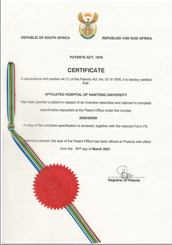 近日,以我院为第一专利权人、肖明兵教授为第一发明人的两项专利成果“USE OF EPALRESTAT IN PREPARATION OF PANCREATIC CANCER DRUGS AND METHOD FOR VERIFYING INHIBITION EFFECT OF EPALRESTAT ON SECRETION OF EXOSOMES FROM PANCREATIC CANCER CELLS(2020/06359,PCT/CN2020/080793)、DETECTION DEVICE AND DETECTION METHOD FOR DOT IMMUNOBLOTTING DETECTION(2020/06356,PCT/CN2020/080798)”分别获得境外发明专利。这是我院首次通过PCT途径申请通过后进入国家阶段并获得授权的境外发明专利成果。 专利合作条约(Patent Co-operation Treaty),简称PCT,已成为当今专利国际保护的重要途径,为发明人在国外寻求专利保护提供了一个高效而经济的程序。主要涉及专利申请的提交,检索及初步审查以及其中包括的技术信息的传播的合作性和合理性的一个国际合作条约。PCT申请要经过国际检索单位的国际检索,得到一份高质量的国际检索报告。该国际检索报告给出一篇或多篇现有技术文件,使得专利申请人既可以了解现有技术的状况,又可以初步判断发明是否具备授予专利的前景。如果国际申请经过了国际初步审查,专利申请人还可以得到一份国际初步审查单位作出的高标准的国际初步审查报告。 近年来,医院在专利管理方面也作了制度的改革与调整,改善了激励机制。最大限度地保护发明人的权益,激发科研人员进行发明创造科技创新的积极性。近两年我院专利成果取得了质的飞跃。2020年度发明专利授权数量高达24项,创历史新高。截至4月20日,本年度以我院为第一专利权人获得授权发明专利已经达到19项,远远超过往年同期数据。科技成果最终的目的是转化,落地生根。专利转化是医院科技成果转化的重要组成部分。医院亦十分注重科技成果转化工作,从制度和措施上进行双重推进,在政策上给予倾斜,流程上给予简化,最大限度调动科技成果完成人的转化积极性。努力推动我院科技成果转化更上新台阶。陈 飞