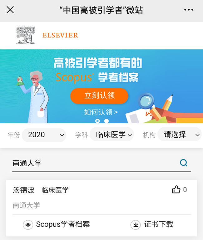 | 汤锦波教授入选“爱思唯尔2020年中国高被引学者”榜单 |