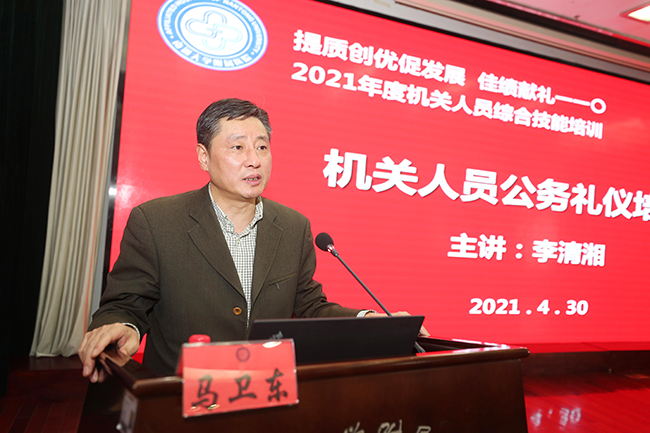 为促进机关工作人员养成良好的礼仪和习惯,进一步提升整体素质和服务水平,4月30日下午,我院举办2021年度机关人员综合技能培训第三讲,特邀国家高级礼仪培训师、南通大学教师工作部部长、高层次人才工作办公室主任李清湘同志做公务礼仪专题培训。院党委常务副书记马卫东主持培训会。 李清湘从介绍礼仪的起源、发展和功能着手,重点讲解了机关人员形象礼仪、窗口礼仪以及公务礼仪等知识。李部长围绕公务接待、礼仪、位次排列等方面,逐条列举了礼仪常识和注意事项,并现场传授了许多实用的社交礼仪技巧。培训会上,李部长频频与参会人员互动交流,现场气氛活跃,收效良好。 马卫东在总结时指出,开展公务礼仪专题培训是提升医院文化软实力的重要抓手,也是机关工作人员更好的服务好患者、服务好临床、服务好社会的重要保障,希望通过培训,加强机关人员对医院文化、医院管理和服务理念的认同感,以更加优质的服务提高患者看病就医的满意度,提升员工自身幸福感和获得感。 医院机关管理干部和工作人员约300人参会。叶伊湉