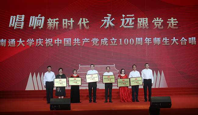6月2日下午,喜迎中国共产党百年华诞之际,南通大学里党旗飘扬,红歌嘹亮。“唱响新时代 永远跟党走”庆祝中国共产党成立100周年师生大合唱在啬园校区体育训练馆举行。28支代表队用嘹亮的歌声唱出了爱党爱国最强音,用音乐感悟红色党史,用歌声牢记初心使命,坚定永远跟党走的信念。由40名队员组成的我院合唱队倾情演唱《歌唱二小放牛郎》,最终荣获一等奖。 南通大学领导浦玉忠、施卫东、董正超、蒋乃华、姜佩剑、顾菊平、侯文华、杨宇民,校党委常委、组织部部长王卫东,校党委常委、宣传部部长吉明明出席活动,并为获奖代表队颁发证书。各部门、学院相关负责人及师生代表一千多人观看了大合唱。 为参加此次比赛,院党委高度重视,院领导亲自参与,院工会精心组织,用心编排,各党总支和分工会大力支持,推荐了40名有声乐基础的参赛队员。队员们在齐斌老师和顾诚国老师的指导下,根据声部分成三队,利用业余时间,刻苦排练,努力提高演唱技巧。比赛现场,在钢琴的伴奏下,我院代表队倾情演唱《歌唱二小放牛郎》,美妙的和声、细腻的演唱、贯穿始终的三声部彻底打动了观众和评委,最终众望所归荣获一等奖。队员们纷纷表示,排练的过程虽然辛苦,但是王二小的动人事迹深深地打动着他们,感染着他们,多次在乐声中热泪盈眶,精神得到了洗礼,队员之间也建立了深厚的友情,真切地感受到团队协作的力量,进一步增强了凝聚力。 (供稿:孙敬峰)