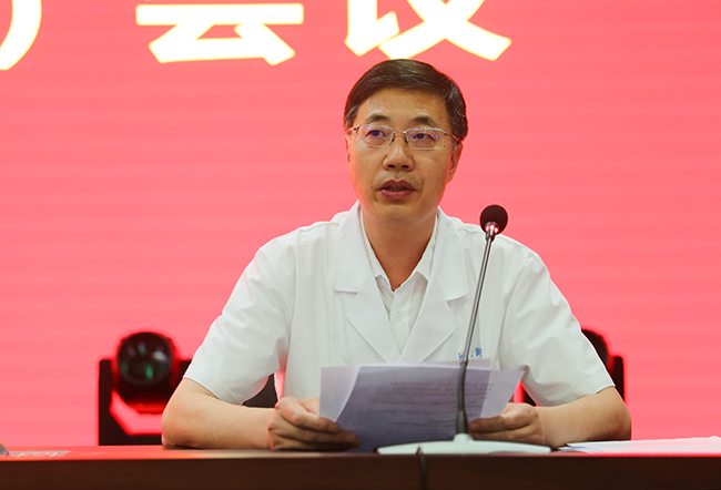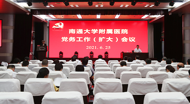 6月25日下午,我院召开党务工作(扩大)会议,院党委书记高建林就做好“七一”期间医院各项工作作出部署、提出要求。会议由院党委副书记兼纪委书记邢晓源主持。 高建林指出,此次党务工作(扩大)会议是对近期抓好医院各项工作的再动员再部署,非常重要也非常必要。高建林就做好“七一”期间医院各项工作提出四点意见:一是慎终如始,严格抓好疫情防控;二是常抓不懈,严实做到安全生产;三是高度重视,严谨开展医疗服务;四是履职尽责,严密压实工作责任。 高建林强调,各部门、各科室要坚决贯彻落实国家和上级工作部署,会后要迅速组织传达学习和落实。全体与会人员务必要提高政治站位,提振精气神,激发源动力,充分发挥中层干部和骨干人员的率先示范作用,积极发挥班子的凝聚力、执行力、战斗力、创造力,开拓进取、敬业奉献,以优异的成绩向建党100周年献礼,也向建院110周年献礼。 党委副书记兼纪委书记邢晓源总结时强调,各级党组织、各部门和各科室负责人会后要第一时间落实会议精神,做到守土有责、守土负责、守土尽责,以热情饱满的精神状态、积极良好的工作状态、优质优绩的医疗服务、稳定有序的工作环境,共同庆祝中国共产党成立100周年。 会上,副院长马强带领全体与会人员一起学习了近期上级有关安全生产工作会议和领导讲话精神。 在院院领导、各党总支(党工委)、党支部书记,党务部门和群团组织负责人出席会议,各职能部门、临床医技科室主要负责同志、科护士长列席会议。 (供稿:叶伊湉)