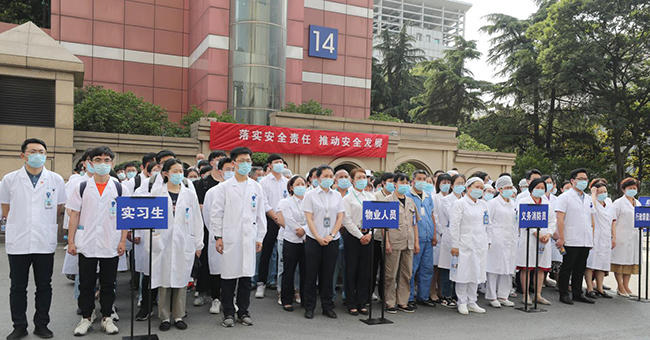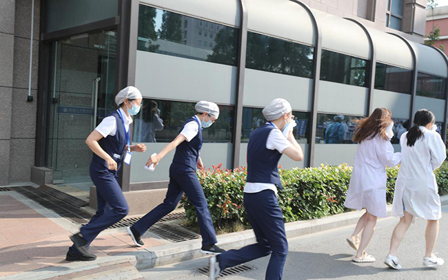 “演练开始!” 6月24日16时00分,现场总指挥、党委委员、副院长马强庄重地下达命令。伴随着电话及烟感警报声响起,我院与南通市消防救援支队联合开展的消防灭火和应急疏散演练正式开始。 此次演练,预设19号楼3层耳鼻咽喉科门诊的自助机线路短路引发了火情。安保处、耳鼻咽喉门诊、医务部、门诊部、后勤服务保障中心、物业及现场群众等100余人,分为灭火行动组组、通讯联络组、疏散引导组、医疗救护组、警戒保卫组、后勤保障组、新闻舆论组共七组参与演练,充分检验实战环境下医院火灾防范和扑救能力。