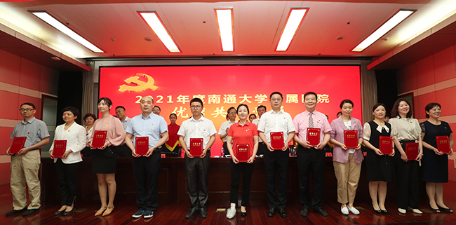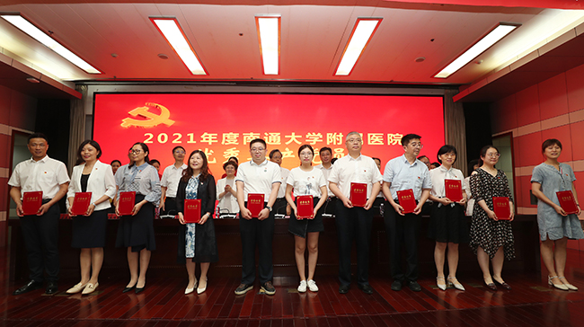 2021年度受到上级党委表彰名单 江苏省先进基层党组织——院党委 南通市先进基层党组织——院党委 江苏省高校“最佳党日活动”优胜奖——院党委 江苏省高校先进基层党组织——呼吸内科党支部 江苏省高校优秀共产党员——王志伟 南通大学党建工作创新奖一等奖——院党委 南通大学“最佳党日活动”优胜奖——院党委 南通大学先进基层党组织——呼吸内科党支部 南通大学特色党支部——重症医学科党支部 南通大学优秀党务工作者:黄中伟 南通大学优秀共产党员: 马 强 王志伟 刘益飞 肖明兵 张 云 张玉泉 陆 舒 陆玉华 赵 华 赵 辉 施 炜 洪 梅 倪松石 唐建忠