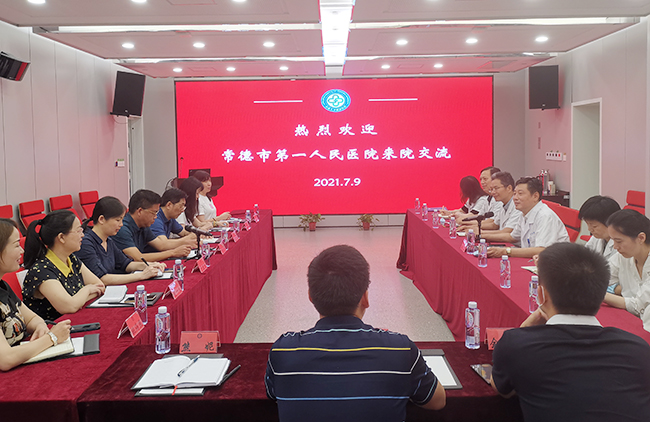 7月9日,常德市第一人民医院纪委书记杨名军,工会主席叶拥军率党政办等相关职能部门负责人一行10人来院交流。院党委常务副书记马卫东及相关职能部门负责人参加交流。 交流会上,马卫东对常德市第一人民医院代表团远道而来表示热烈欢迎,他从医院概况、党的建设、文化建设、办公室工作等方面对代表团作了详细的介绍。杨名军高度赞赏我院在基础建设、文化建设、干部管理等方面的成绩,表示两家医院具有很多相似之处,学习交流具有很大的借鉴和学习价值,希望今后继续深入交流,以促进提高医院管理水平。双方对口部门负责人相互交流了各自工作。 代表团一行参观了我院新门诊楼、院内宣传栏、党建文化长廊等。 (供稿:党委宣传部)