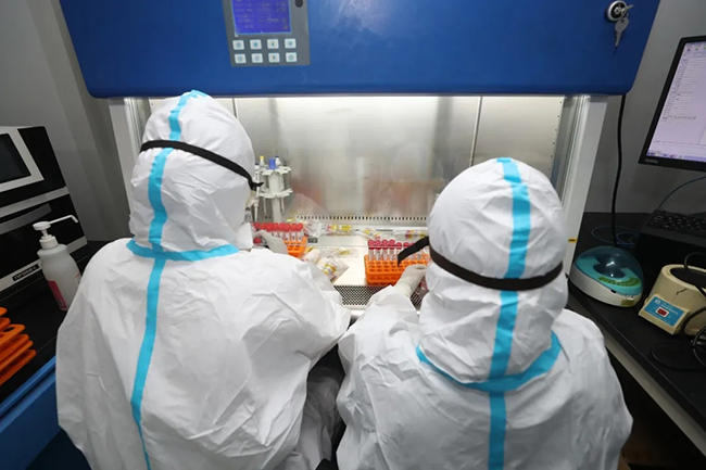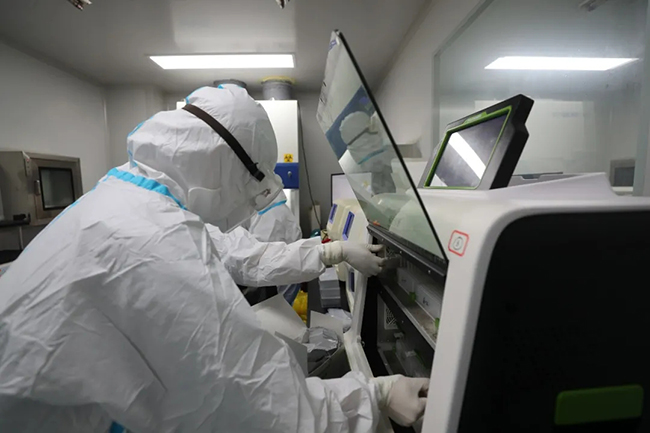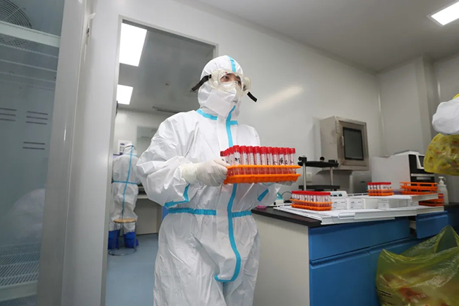 在标本处理区待久了会缺氧、疲劳、眼睛干涩,但在这特殊时期没有人抱怨,只有24小时不停歇开足马力投入战斗,用实际行动为防疫奉献出自己的一份力量。王旭东介绍,我院核酸检测中心目前主要针对医院内部工作人员、患者及其家属和部分社会采集的检测样本进行检测任务,尤其做到快速应对医院发热门诊的患者。