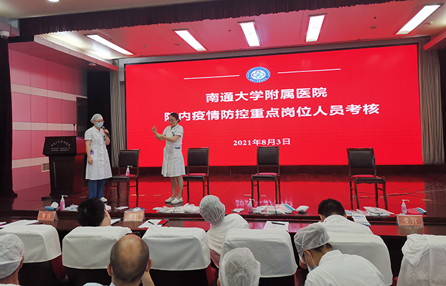 为了强化新冠肺炎疫情感染预防与控制工作,提升疫情防控重点岗位医护、工勤等工作人员的防护意识与技能,8月3日、4日下午,我院分别组织院内预检分诊、发热门诊、发热隔离病房、核酸采集等疫情防控重点岗位近100名工作人员进行防护知识与技能的培训和考核。 医院邀请部分援鄂队员和感控专家作为考官,对疫情防控重点岗位工作人员防护装备穿脱进行培训与考核。首先由考官进行穿脱示范并针对每个重点环节进行讲解,其次每个考核对象进行现场操作,考官分别给予评价和指导。 院内疫情防控重点岗位人员基本知识与基本技能的培训和考核是我院疫情防控的常态化工作之一。本次考核遵循“不及格、不上岗”的原则,旨在提高工作人员的防护意识,提升防护能力,确保重点岗位人员人人懂防护、会防护,夯实我院防疫的第一道防线。 (供稿:新冠肺炎疫情防控工作领导小组办公室)