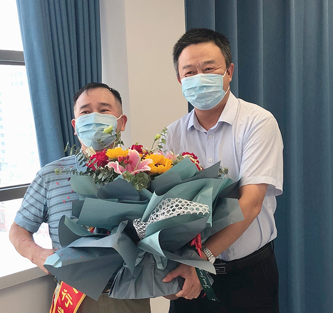 作为援宁专家在南京支援了25个日夜及集中隔离14天后,9月6日,我院感染管理办公室主任王跃国回到医院岗位,感染管理办公室全体人员为他举行了简单的欢迎仪式,副院长顾志峰参加了欢迎仪式。 7月29日下午,我院接省卫生健康委通知,抽调感染管理办公室主任王跃国参加南京医科大学附属逸夫医院感染防控工作。疫情就是命令,防控就是责任。王跃国顾不上休息,第一时间将我院感染防控工作安排妥善后,驰援南京。在南京疫情最紧张的时候,江宁成为疫情中心,需把逸夫医院快速改成封控区定点医院。时间紧、任务重,王跃国到达逸夫医院后第一时间就投入工作,指导制定各类制度流程,重点对收治病区三区两通道进行改造。面对陌生的工作环境,他利用深夜走遍医院的每一个角落,合理规划好病员和医务人员行走路线,他穿着厚厚的防护服不断优化预检分诊、发热门诊、核酸采样、病房收治的流程、路线。工作期间,他坚持每天对一线院感进行现场督查,针对各种可能出现的风险进行评估,提出建设性意见。他还针对不同环节的医务工作者分批次进行新型冠状病毒感染的预防与控制专项培训。收治封控区的病人中发现6例确诊病例,没有发生院感事件。王跃国用他专业的院感知识和严谨的工作精神,奋战在疫情防控的第一线,展现了通大附院人的职业风采。 (供稿:陈晓君)