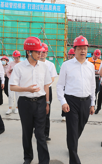 9月10日下午,市委副书记、代市长吴新明,市委副书记沈雷,市政府秘书长凌屹等一行到我院新院区视察指导。院党委书记高建林、副院长鲁菊英等陪同视察。 在新院区建设工地,高建林汇报了新院区的地理区位优势、规划布局结构、基本建设进度等,特别介绍了由中央预算内投资的重大疫情救治基地项目——平疫结合楼的建设情况。 吴新明表示,通大附院作为长三角北翼的省级综合类医疗中心,为守护南通及周边地区百姓的健康作出了巨大贡献。新院区建设是医院高质量发展的重要战略,更是江海百姓的健康福祉。平疫结合楼作为完善我市卫生服务体系“补短板”的举措,对切实提高应对突发重大公共卫生事件有着积极意义和重大作用,要切实抓好平疫结合楼项目,一旦发生疫情能立即响应、有效保障。吴新明还就抓好疫情防控、安全生产等提出具体要求。 市政府相关部门、南通创新区管理办公室、南通创新区建设投资有限公司、我院相关职能部门负责人等参加了视察活动。 (供稿:党委宣传部)